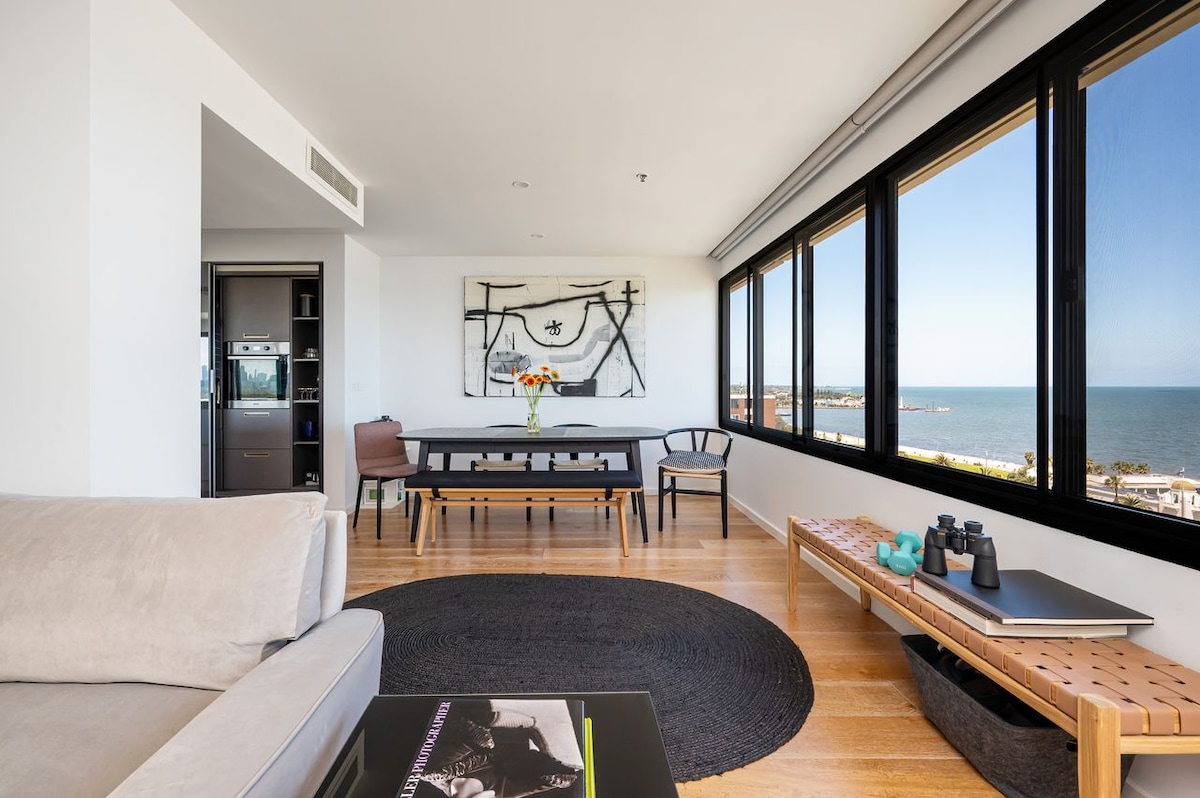 This two-bedroom apartment has stunning views across Port Phillip Bay and Melbourne CBD. ItтАЩs 80 metres to the city tram and 10 minutes by tram to MSAC. The penguin viewing platform and the Australian F1 track are 10-minute walks away. There are numerous restaurants, many within walking distance. One highlight is drinks on the balcony as the sun sets across the bay. And early risers may catch the hot-air balloons as they drift across the city.