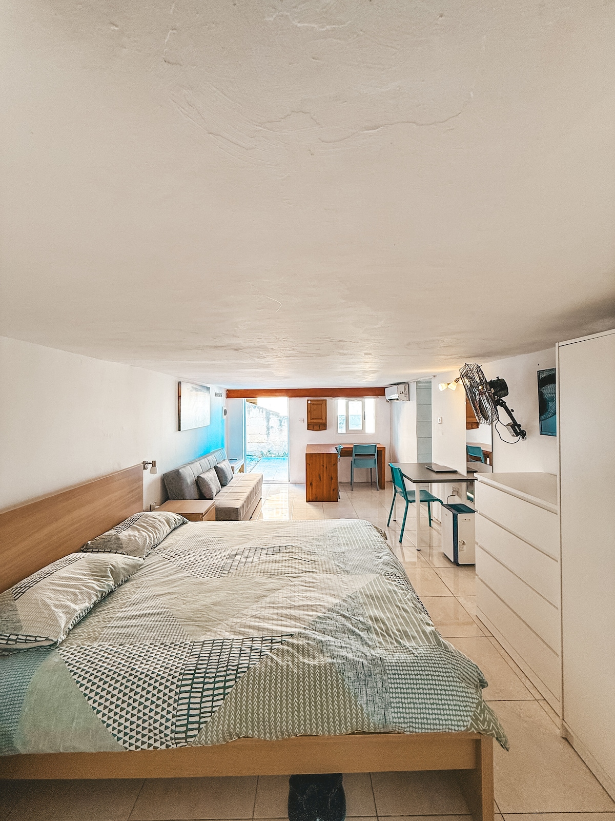 Jasmine Studio is a 1st floor studio room of our family guest house. It has an independent entrance (shared with one other guest room) up one flight of stairs from the garden and pool. We are close to Balluta Bay and all the restaurants and night life of St Julian's. You can run, walk and swim from the 5km coastal promenade. The whole island can be accessed with local bus links or a hire car to explore the northern beaches and cliff walks. You'll enjoy your stay in Malta, summer or winter!