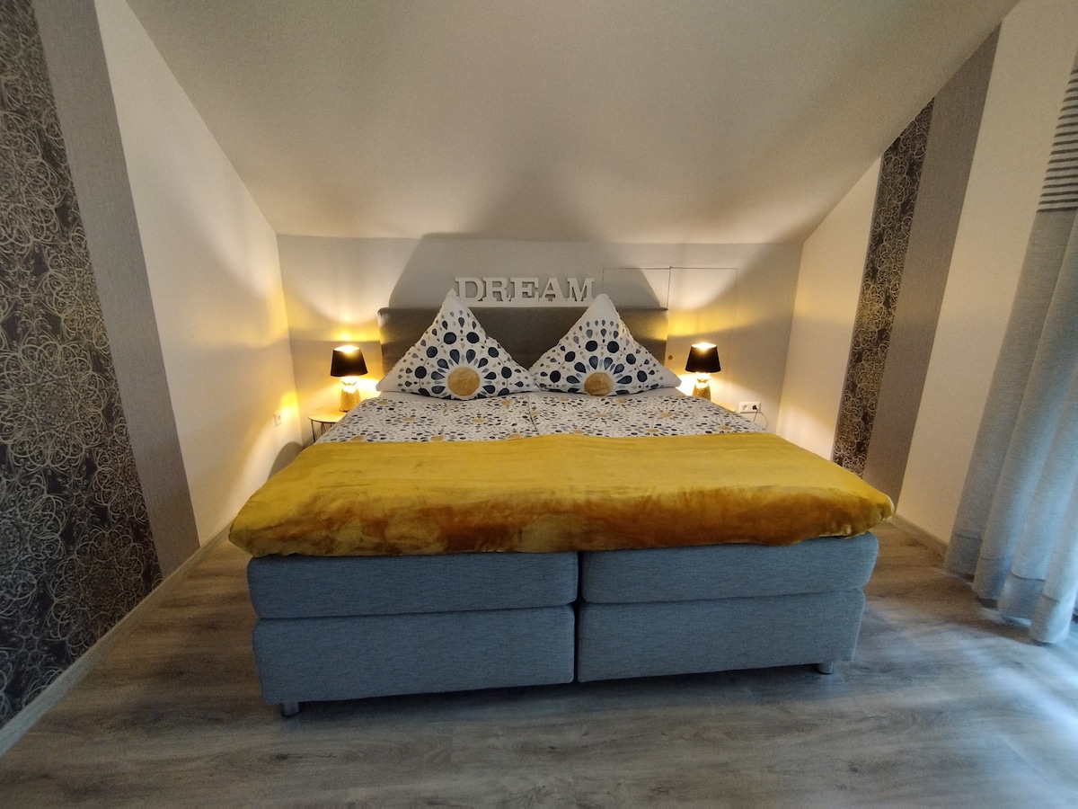 प्रिय मेहमान, अगर आप अपने यात्रा के चरण में ठहरने की जगह या आरामदायक माहौल में पैदल यात्रा, मोटरसाइकिल टूर या बाइक की सवारी के लिए शुरुआती बिंदु की तलाश कर रहे हैं, तो मुझे आपका स्वागत करते हुए खुशी हो रही है। निजी बाथरूम वाला लगभग 25 वर्गमीटर का एक आरामदायक कमरा आपका इंतज़ार कर रहा है। बगीचे में एक छोटा - सा किचन उपलब्ध है। मोसेल 15 किमी , सस्पेंशन केबल ब्रिज गीयरले 20 किमी। हमारे इलाके में कई ड्रीम लूप हैं, जहाँ आप हाइकिंग का मज़ा ले सकते हैं। मुझे आपकी विज़िट का इंतज़ार रहेगा 😊
