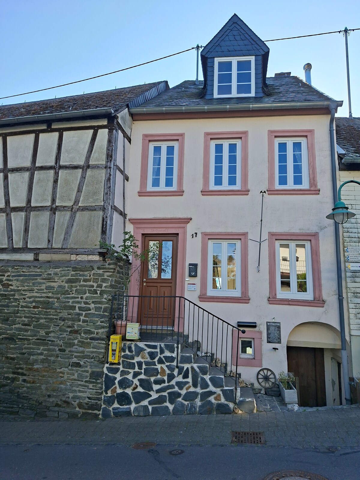 विशाल, प्यार से सुसज्जित अपार्टमेंट एक पूर्व ऑस्ट्रेलियाई की पहली मंजिल पर अंगूर के बागों के किनारे पर स्थित है। यहाँ से आप अंगूर के बागों और मोसेल के शानदार दृश्य का आनंद ले सकते हैं। हाइकिंग और साइकिल चलाने या बस मस्ती करने और आनंद लेने के साथ सक्रिय छुट्टी। यहाँ कुछ भी मुमकिन है। 2 ई - बाइक या बाइक सुरक्षित रूप से पार्क की जा सकती है।