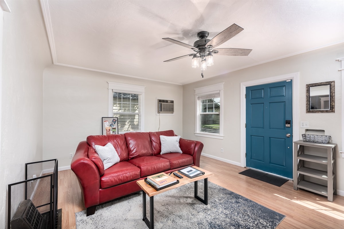 कामकाजी समूहों, यात्रा नर्सों और पेशेवरों का स्वागत करें - पूरा घर, 2 बेडरूम, 1 बाथरूम। अलग oversized 2 कार+ गेराज। पिन कोड के साथ आसान स्वयं चेक - इन के लिए कीलेस लॉक। पूरी रसोई, लक्ज़री डाइनिंग सेट। समायोज्य ऊंचाई workdesk (खड़े/बैठे)। नया 75 इंच UHD/4K स्मार्ट टीवी, कई प्रीमियम स्ट्रीमिंग सेवाएं शामिल हैं। सेंट्रल एयर हीटिंग/कूलिंग। सभी नए एलईडी प्रकाश व्यवस्था। आधुनिक वॉशर और स्टीम ड्रायर, कॉम्प्लीमेंट्री डिटर्जेंट और फ़ैब्रिक सॉफ़्नर। निजी पार्किंग, ड्राइववे और फ़ुटपाथ के किनारे।