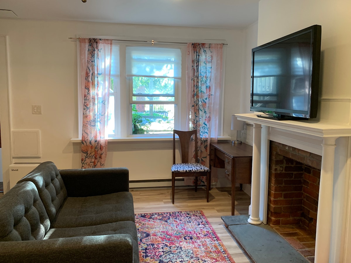 Keep it simple at this peaceful and centrally-located historic brownstone built by P.T. Barnum for his staff 140 years ago. Basement unit across the street from Bridgeport University, 1 block to Seaside Park and beaches, 5 min walk to amphitheater, and 10 min walk to Metro North or LI ferry. Includes kitchenette with fridge/freezer, microwave, stove and oven, desk, couch, wifi, tv with Roku , iron, hairdryer, and full bathroom.