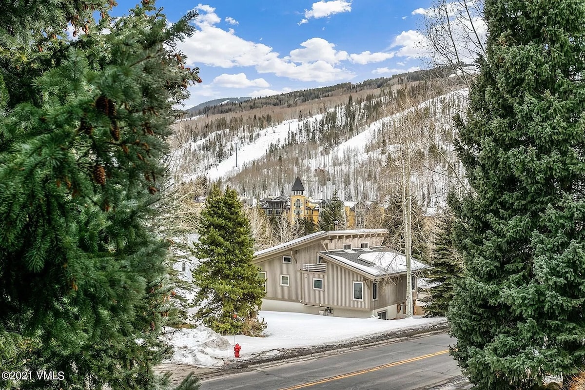 Fabulous Lionshead location w/ VIEWS of mountains & gondola from every room! Walk across the pedestrian bridge to Lionshead Village or jump on the FREE Town of Vail Shuttle that stops across the street from the condo. Beautifully remodeled, top floor condo includes private deck w/ bbq, free wifi, gas fireplace & convenient, reserved free parking. Near hiking, biking & golf. Newer carpet, tile & paint. 936 square feet. Enjoy the Rocky Mountains at your home away from home near Lionshead!