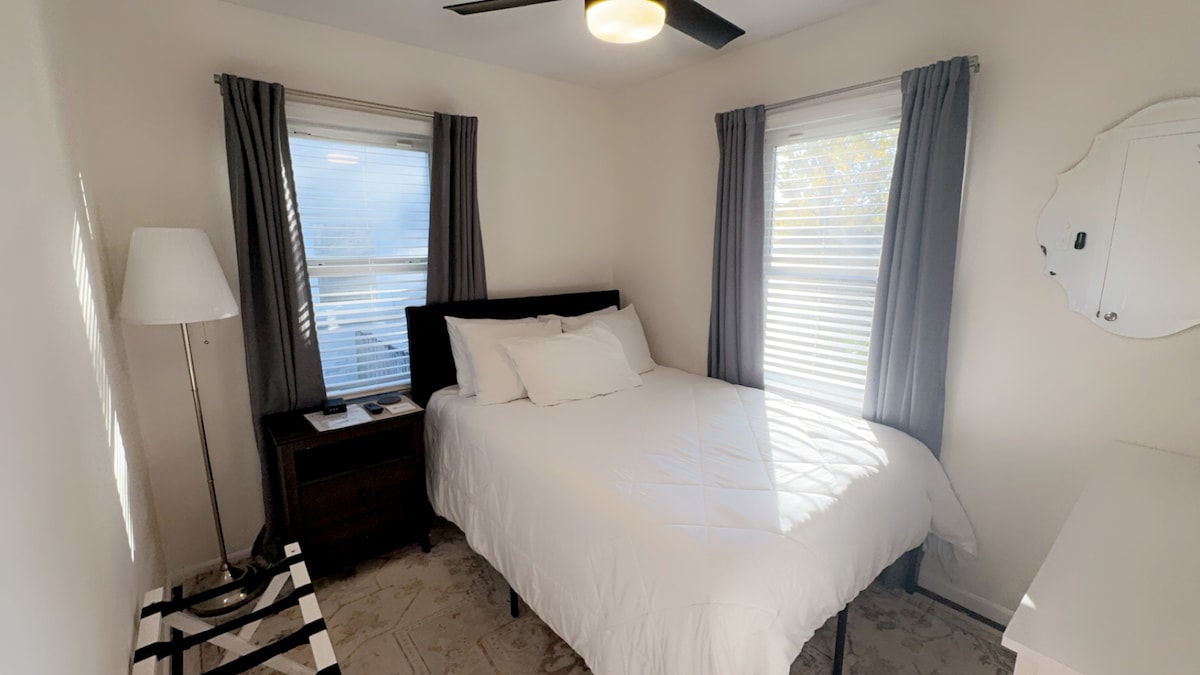 एक तरह का घर - दादी के डॉग हाउस में आपका स्वागत है! कुत्ते प्रेमियों के लिए डिज़ाइन किया गया यह आरामदायक 2BR/1BA रिट्रीट, BR1 में एक किंग बेड, BR2 में दो ट्विन बेड और आकर्षक डॉग - थीम्ड सजावट प्रदान करता है। अपने प्यारे दोस्तों के लिए हमारे पूरी तरह से सुसज्जित किचन, प्राचीन बाथरूम और बाड़ वाले पिछवाड़े का आनंद लें। कुत्तों की फ़ोटो, मूर्तियों और कैनाइन सौहार्द की गर्मजोशी से घिरे एक प्यार से तैयार किए गए घर में आराम करें। आपके और आपके चार पैरों वाले परिवार के सदस्यों के लिए हमारे घर पर प्यार, हँसी और हिलती हुई पूंछ का अनुभव करें!