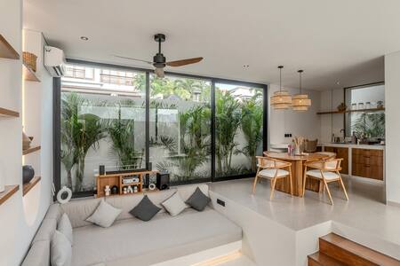 खूबसूरती से डिज़ाइन की गई 2 - बेडरूम वाली कोठी, जो आधुनिक भूमध्यसागरीय शैली को हरे - भरे ट्रॉपिकल वाइब्स के साथ मिलाती है। कांग्गु के एक शांतिपूर्ण हिस्से में स्थित, कोठी समुद्र तट से केवल 10 मिनट की दूरी पर है और निर्वाण लाइफ, स्थानीय कैफ़े और बुटीक की दुकानों से केवल 5 मिनट की दूरी पर है। अपने प्रियजन के साथ आएँ, अपने दोस्तों को साथ लाएँ या परिवार के साथ क्वालिटी टाइम बिताएँ, यह कोठी ठहरने की आसान और मज़ेदार जगहों के लिए डिज़ाइन की गई है!