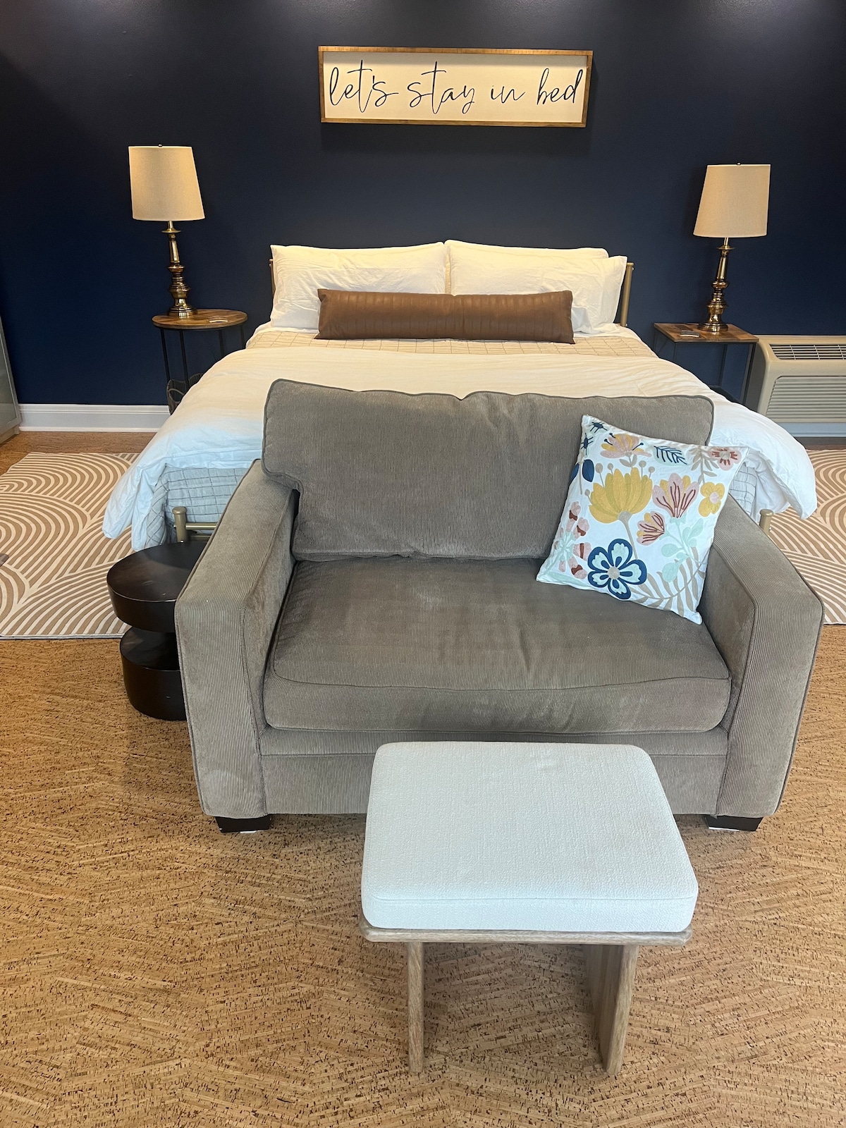 बेडरूम 1 में एक फ़ुल साइज़ बेड है, जिस पर कॉटन की चादरें बिछी हुई हैं। गद्दा मध्यम कड़ा है। बेडरूम 2 में नर्म गद्दे वाला एक डे-बेड है। बाथरूम कुछ ही कदम की दूरी पर है। हवादार खिड़कियाँ, सीलिंग फ़ैन और बेडरूम में एयर कंडीशनर या हीटर के साथ मिनी-स्प्लिट। लिविंग रूम में रेडिएंट हीट और सीलिंग फ़ैन। रेस्टोरेंट, पार्क, लाइब्रेरी, बस लाइन, किराने का सामान तक आसानी से पैदल चलें। मैं पास में ही रहता हूँ, इसलिए ज़रूरत पड़ने पर मैं उपलब्ध रहूँगा, लेकिन आपके पास पूरा घर होगा!