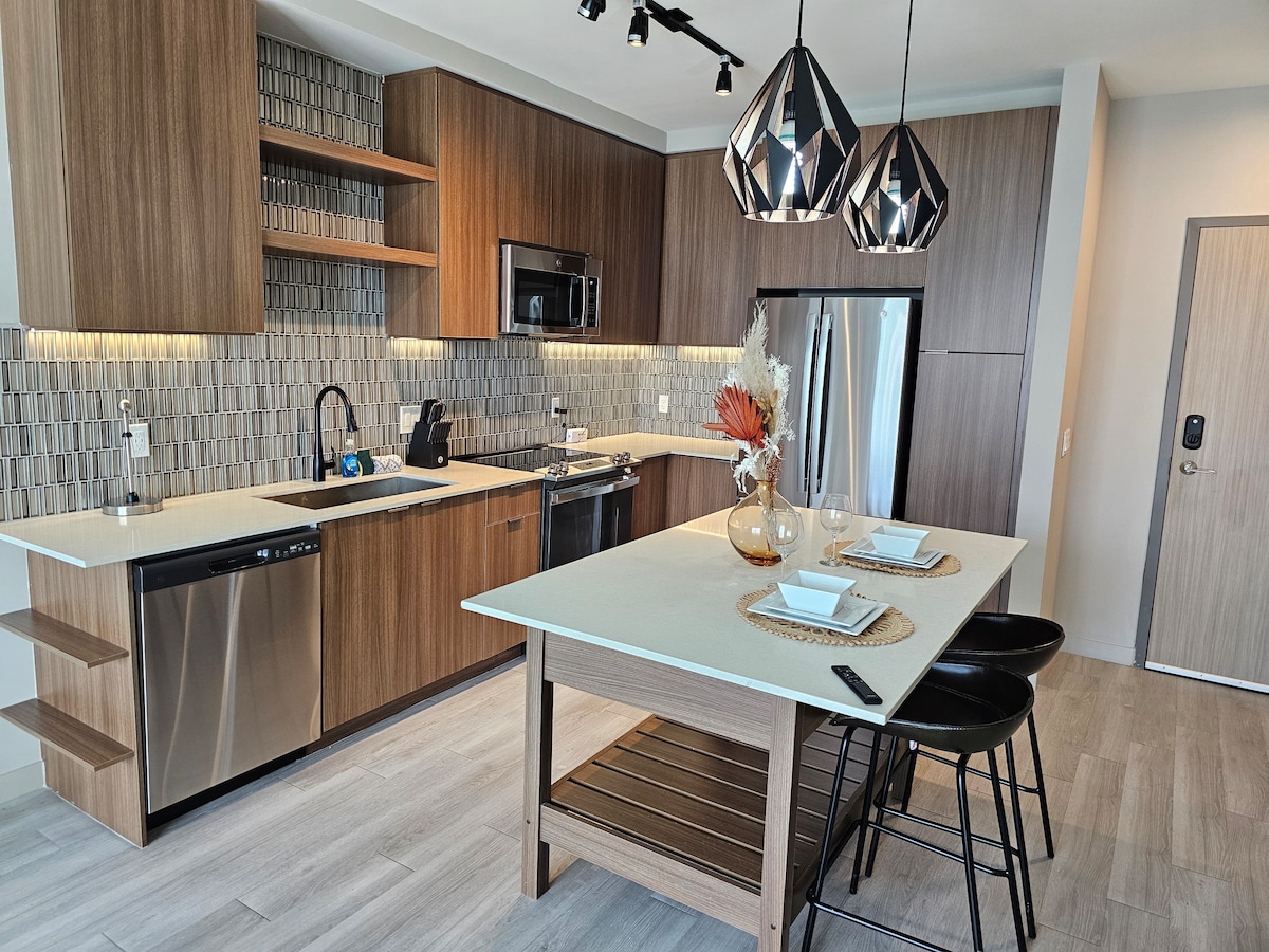 आधुनिक ओएसिस किंग बेड फ़ुल किचन अपार्टमेंट