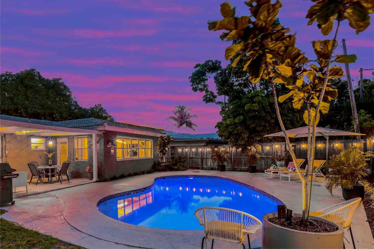 आपके उष्णकटिबंधीय स्वर्ग में आपका स्वागत है। यह सुविधाजनक रूप से स्थित, धूप से भरा घर, जिसमें एक तटीय ठाठ खिंचाव है, जिसमें आपकी ज़रूरत की हर चीज़ है। परिवार के साथ छुट्टियाँ बिताने, दूर से काम करने वाले खानाबदोशों, रोमांटिक छुट्टियाँ बिताने या घर से दूर किसी खूबसूरत घर की तलाश करने वाले किसी भी व्यक्ति के लिए बिल्कुल सही। प्रसिद्ध लॉडरडेल - बाय - द - सी बीच (3 मील), विल्टन मैनर्स, FLL एयरपोर्ट, लास ओलास/डाउनटाउन और DRV PNK स्टेडियम (इंटर मियामी CF) से बस कुछ ही मिनट की दूरी पर