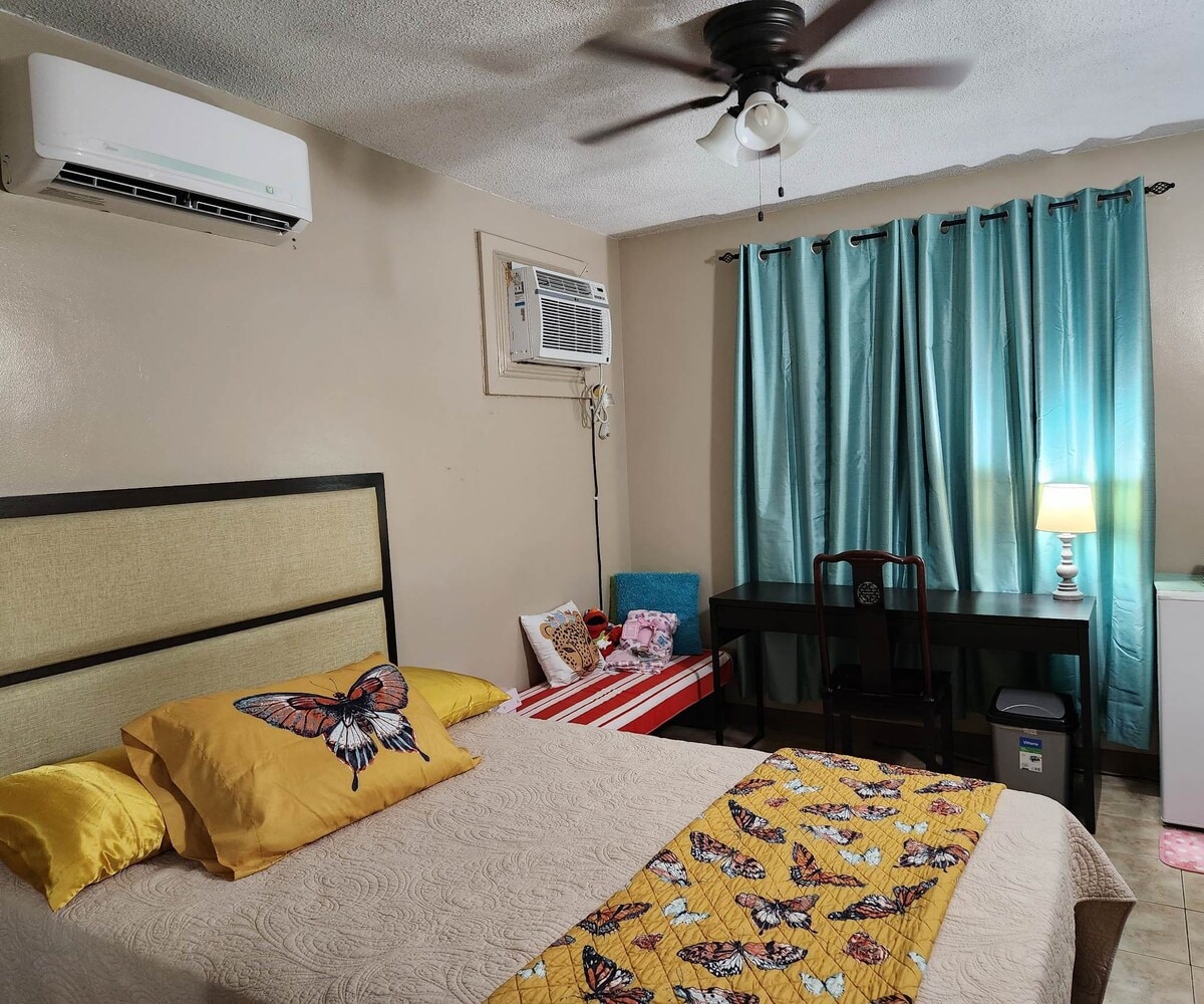 Hafa Adai! Located on the main road in Tumon—1 min drive / 5 min walk to Tumon Beach in a safe, secure community 😊 Enjoy a free on-site pool and year-round A/C. Stream Netflix, Disney+, and Apple TV. Prime location just below St. John’s School. High-end mattress, low bed for kids, plus a desk & chair for students. Self check-in. Baby high chair, playpen (recommended for under 1), and crib (for infants under 3 months) available upon request.