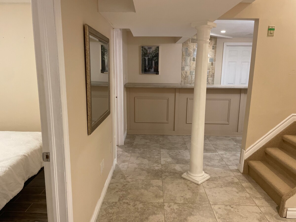 हमारे घर और शहर के बीचों - बीच बसे एक आकर्षक बेसमेंट बैचलर अपार्टमेंट में आपका स्वागत है! प्रेसिडेंशियल सुइट हमारे द्वारा हमारे घर में उपलब्ध कराए गए दो निजी सुइट में से सबसे बड़ा है। एक्सप्रेसवे और कई सारे रेस्टोरेंट के लिए मिनट। अकेले यात्रियों, युवा परिवार या आरामदायक और किफ़ायती विश्राम की तलाश करने वाले जोड़ों के लिए बिल्कुल सही, यह आरामदायक जगह और हमारी मेहमाननवाज़ी एक यादगार ठहरने के लिए आपकी ज़रूरत की हर चीज़ प्रदान करती है।