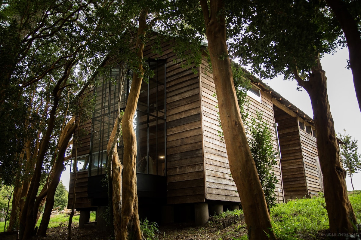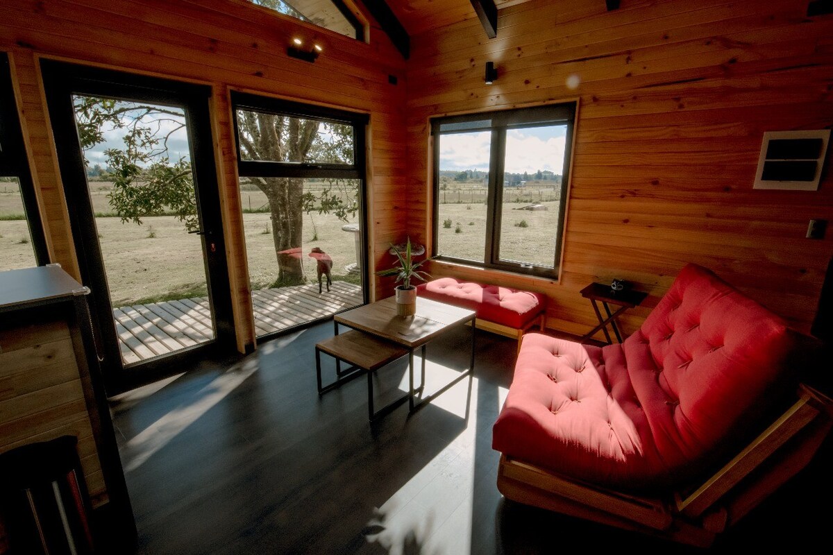 दो लोगों के लिए डिज़ाइन किए गए इस बुटीक केबिन से बचें। यह एक बड़े दक्षिणी मैदान में एकमात्र केबिन है, जिसमें कोई पड़ोसी नहीं है, केवल प्रकृति की शांति और शायद दूरी में एक ट्रैक्टर या गाय है। सौर ऊर्जा और आरामदायक डिज़ाइन के साथ, दक्षिणी चिली की झील और ज्वालामुखियों को देखने वाले एक निजी हॉट टब का आनंद लें। फ़्रुटिलर और प्यूर्टो वारास से बस कुछ ही मिनट की दूरी पर, आपको वाकई एक खास जगह की शांति नज़र आएगी। @nanuhchile