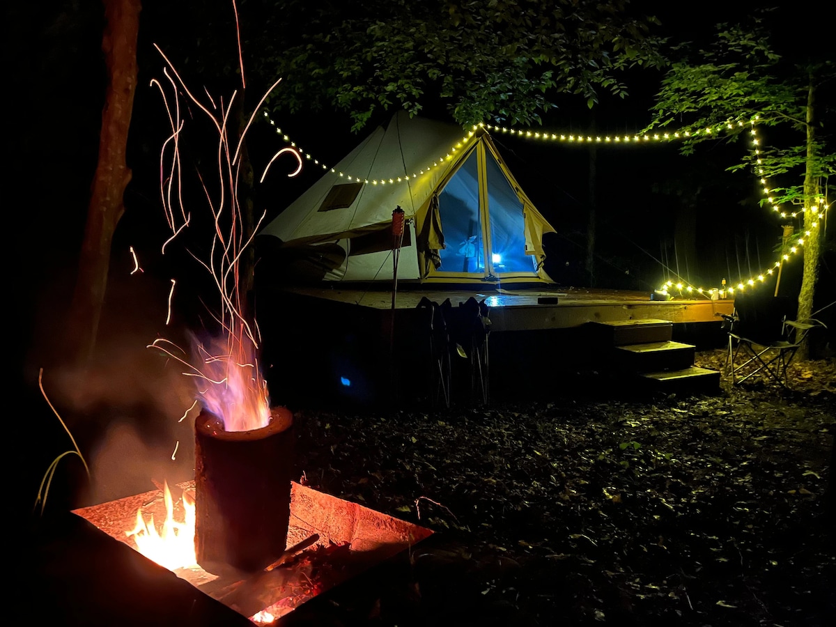 हमारे हस्तशिल्प वाले ग्लैम्पिंग टेंट में ठहरें, जो पारंपरिक लकड़ी के फ़्रेम वाली जॉइनरी के साथ बनाया गया है और सांस लेने वाले सूती कैनवास की सुंदरता और सनकी में लिपटा हुआ है। साँस लें। करीब आ जाएँ। शांत रहें। सुबह की धुंध को अपने सामने के बरामदे से घाटी में बहते हुए देखें। कैनवास के उस पार धूप में नाचते हुए झपकी लें। एक अच्छी किताब पढ़ते हुए पक्षियों के गाने और हवा की आवाज़ों में डूबें। आस - पास के एडवेंचर: 15 मिनट – भारतीय Mtn. पार्क 40 मिनट – नॉरिस लेक 45 मिनट – कंबरलैंड फ़ॉल्स 2 घंटा – ग्रेट स्मोकी Mtn. Ntl. पार्क
