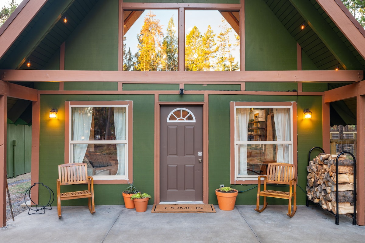 हमारा छोटा - सा लॉग केबिन एक आरामदायक ठिकाना है, जो हाइकिंग, माउंटेन बाइकिंग और क्रॉस कंट्री स्कीइंग के करीब है, लेकिन बेंड ओरेगन की सुविधाओं से सिर्फ़ 10 मील की दूरी पर है। यह एक देहाती जगह है, जिसमें आधुनिक स्पर्श हैं, जैसे गैस रेंज, रेफ्रिजरेटर और एक गैस चिमनी। बाथरूम को केबिन से अलग किया गया है - दरवाज़े से सीढ़ियाँ। यह पूरी तरह से प्लंबिंग और शॉवर से लैस है। हमारी जगह उन लोगों के लिए एकदम सही है जो घर के आराम के साथ बाहर घूमना पसंद करते हैं। 12 साल से कम उम्र के बच्चे नहीं -- और अफ़सोस, कोई पालतू जीव नहीं।