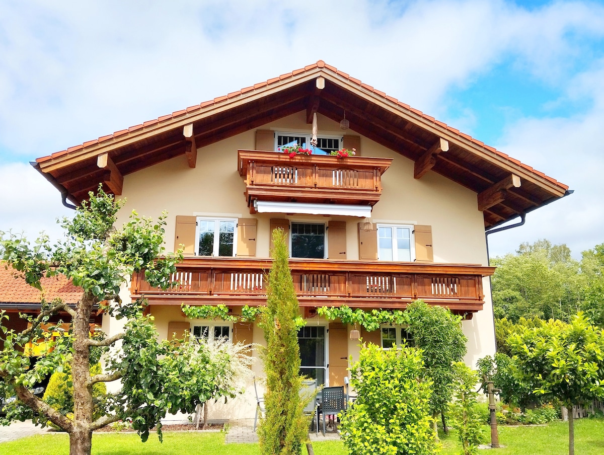 एक शानदार लोकेशन में बालकनी के साथ सहानुभूतिपूर्ण 1 - कमरे वाला अपार्टमेंट। पहाड़। पैदल दूरी के भीतर: लीडो, लोकप्रिय रेस्तरां, बस लाइन (रोज़ाना चलती है लेकिन प्रति घंटा नहीं ;-) यहाँ आप होंगे: Tettenhausen, Waging का एक जिला, सुंदर Chiemgau क्षेत्र में एक जलवायु स्वास्थ्य रिज़ॉर्ट है। हम सीधे साइकिलिंग और लंबी पैदल यात्रा के रास्तों पर मौजूद हैं। कार से कई सैर - सपाटे के लिए आदर्श शुरुआती बिंदु: ca. Salzburg/Chiemsee/Ruhpolding से 30 km और Berchtesgaden से 50 किमी की दूरी पर।