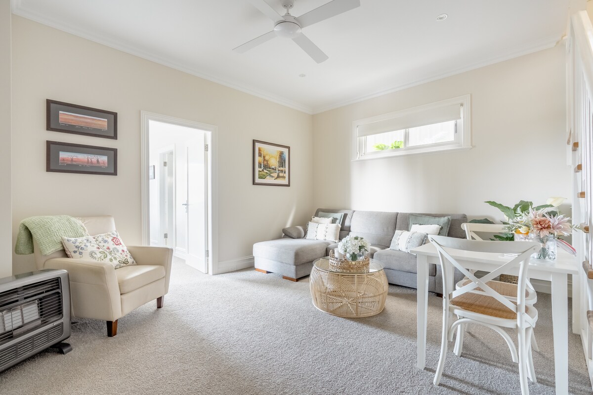 सेवन माइल बीच से महज़ 1 किमी और बेरी विलेज से 6 किमी दूर, 3 एकड़ के पुरस्कार विजेता बगीचों में मौजूद हमारे 2 - बेडरूम वाले बलुआ पत्थर के कॉटेज से बचें। जोड़ों या परिवारों के लिए बिल्कुल सही, जिसमें उत्तर की ओर के शानदार नज़ारे, आरामदायक अंदरूनी और विचारशील स्पर्श हैं। सर्दियों में आग के गड्ढे से आराम करें, गर्मियों के दिनों का आनंद लें, और आस - पास की वाइनरी, पैदल यात्रा और समुद्र तटों का जायज़ा लें।