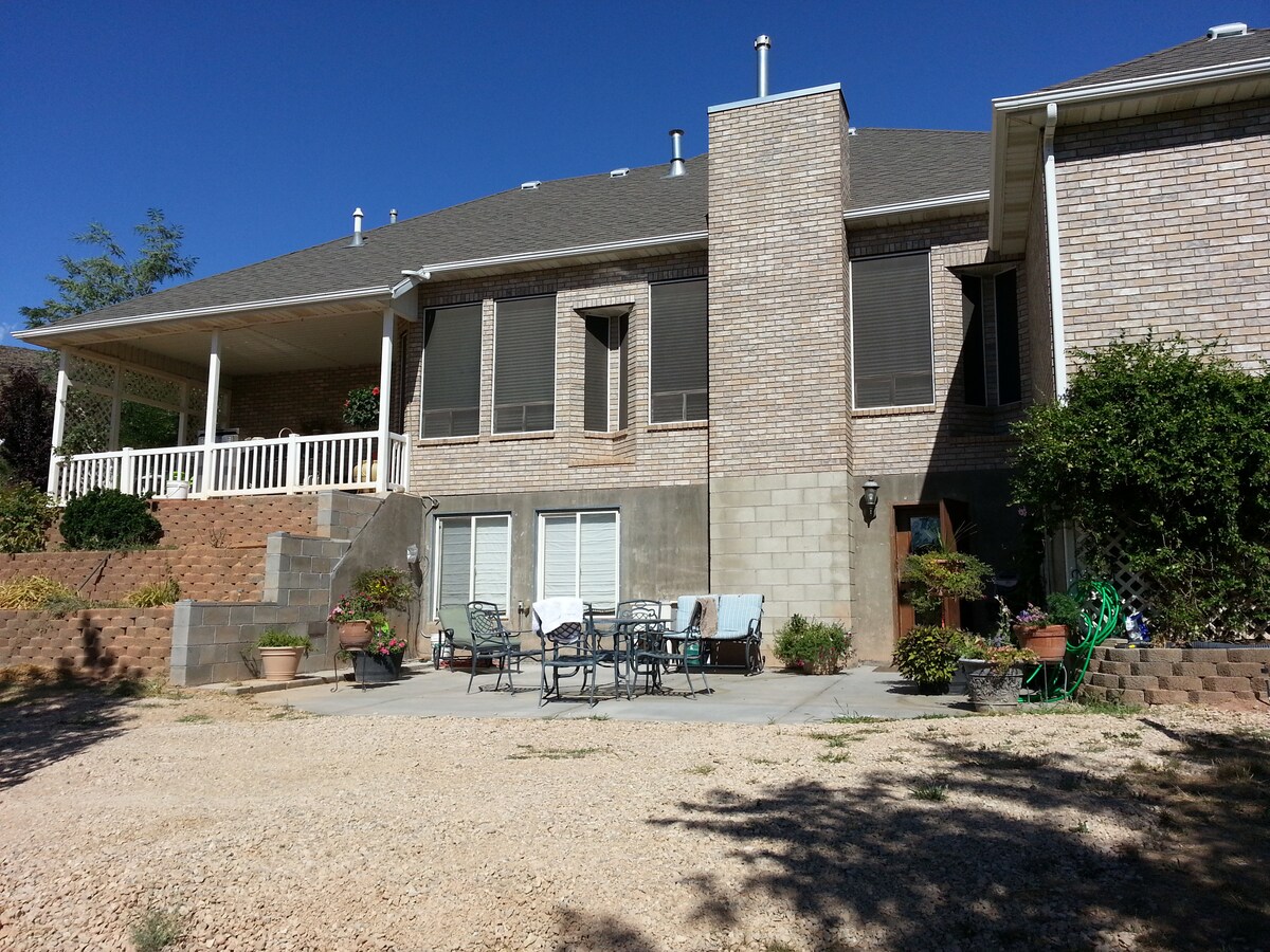 * सिय्योन से 20 मील दूर! *निजी आसान प्रवेश द्वार *पूरी जगह का मतलब है कि कोई साझा जगह नहीं है। हम अलग - अलग रहते हैं। * ऑफ़ - द - स्ट्रीट मुफ़्त पार्किंग * शॉवर के साथ आपका अपना अटैच बाथरूम *कोड कुंजी - कम प्रविष्टि *ठंडा ए/सी, गर्म चिमनी *ग्रेट वाईफाई *टीवी (फ्री हूलू, डिज्नी, ईएसपीएन) *डेस्क और कुर्सियाँ *माइक्रोवेव, फ़्रिज, फ़्रीज़र आपके डेक तक 8 कदम। 1 -2 मेहमानों के लिए क्वीन बेड ऐसी ❤️सुविधाएँ लिस्ट में नहीं हैं, जो आपके लिए घर जैसा महसूस करने के लिए उपलब्ध हैं! पता लगाएँ!