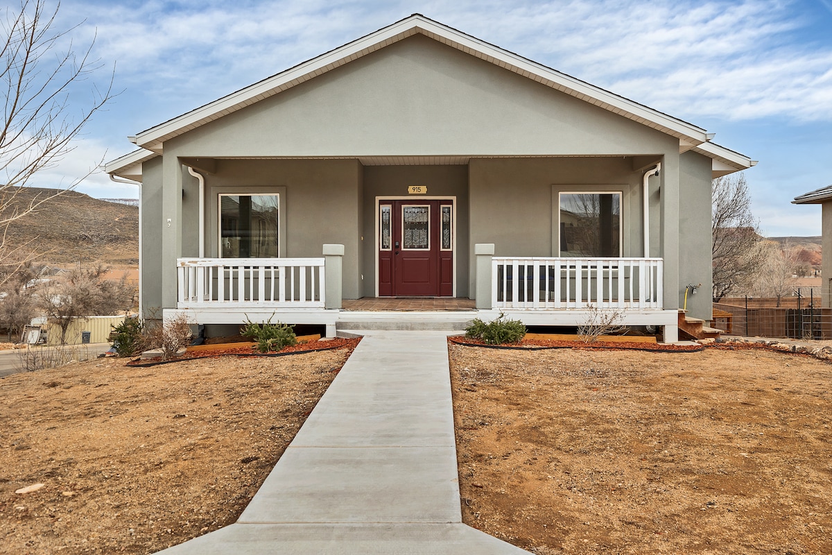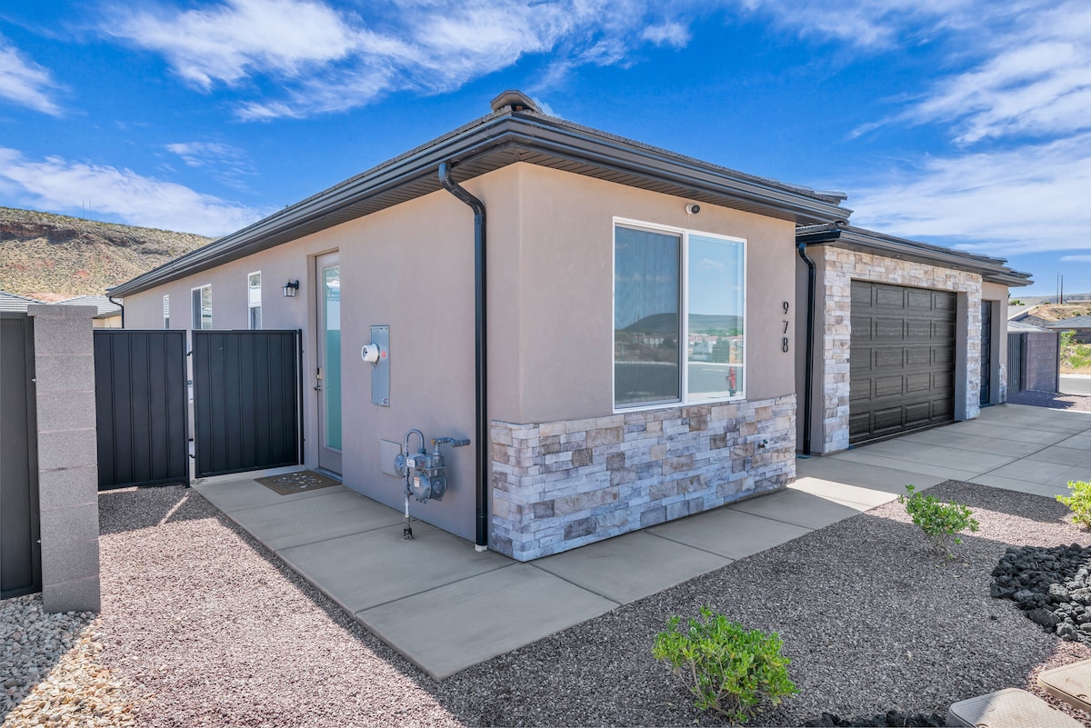 इस मध्यवर्ती आधुनिक जगह में आरामदायक, सिय्योन नेशनल पार्क की सुंदरता से एक छोटी ड्राइव। हमारा 2 - बेडरूम 1 - बाथरूम रिट्रीट सभी दक्षिणी यूटा का आनंद लेने के लिए आदर्श होम - बेस है। चाहे आप पार्क लंबी पैदल यात्रा कर रहे हों, ट्रेल्स बाइकिंग कर रहे हों, या सेंट जॉर्ज की खरीदारी कर रहे हों, आप आराम करेंगे और आउटडोर लाउंजिंग, ग्रिलिंग और एक निजी हॉट टब के साथ एक शांत छायांकित पिछवाड़े में रीसेट करेंगे। साइट पर किचन और लॉन्ड्री के साथ घर की सभी सुविधाओं का आनंद लें।