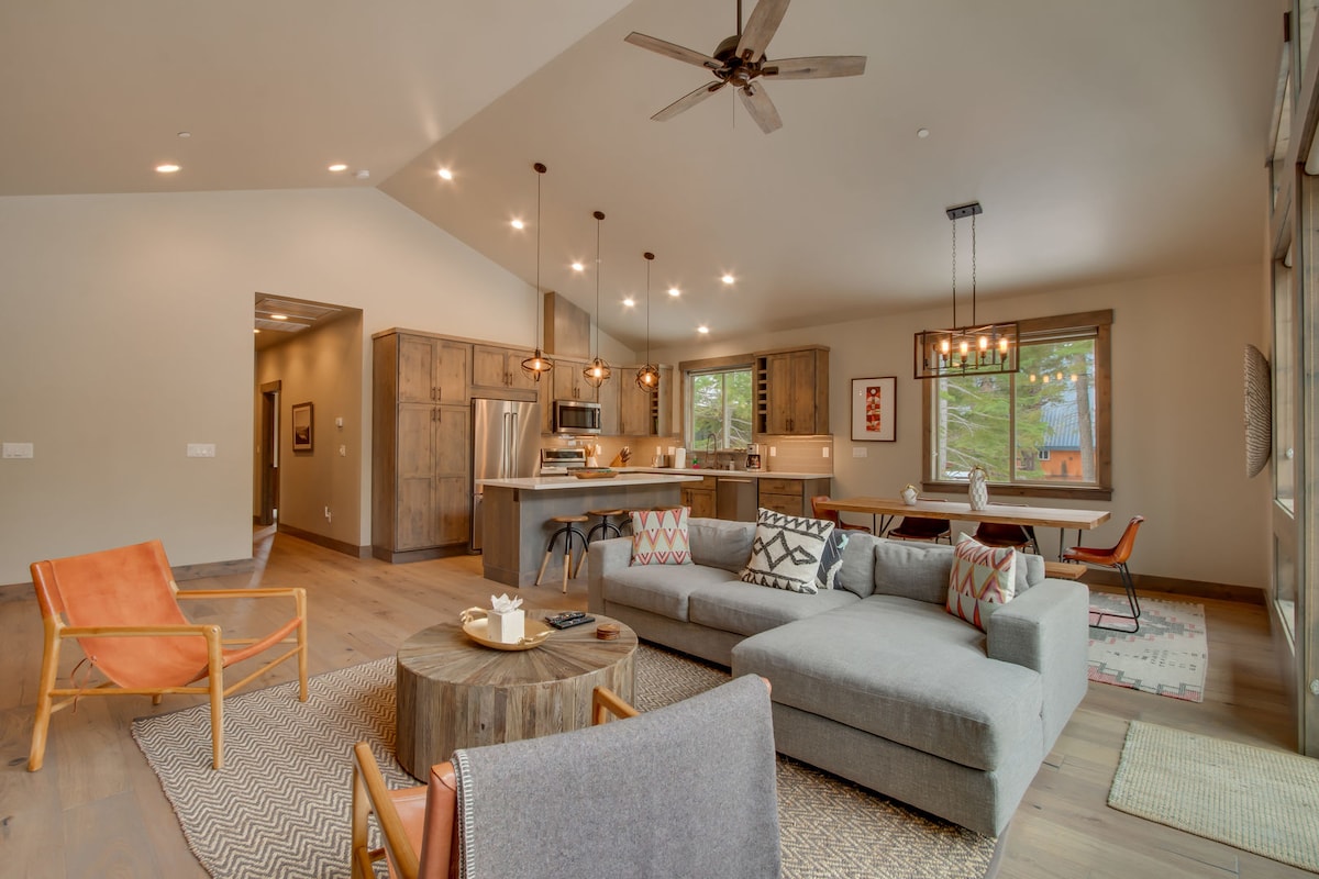 Tahoe में सबसे साफ और नवीनतम घर! इस वास्तुशिल्प रूप से दिलचस्प, बेदाग और विशाल घर में आराम करें। स्पा - जैसे मास्टर बेडरूम में एक बड़ा भिगोने वाला टब, दो शक्तिशाली शॉवर हेड के साथ एक टाइल शॉवर और एक किंग बेड शामिल है। क्वीन बेड और कस्टम बाथरूम के साथ आरामदायक, हल्का भरा गेस्टरूम एकदम सही रिट्रीट है। पूरी तरह से स्टॉक किया गया, आधुनिक रसोई पेटू भोजन को प्रेरित करेगी। अपनी गुंबददार छत, क्वीन बेड और स्मार्ट मनोरंजन के साथ, लिविंग रूम एप्रेस और मूवी नाइट के लिए एकदम सही है।
