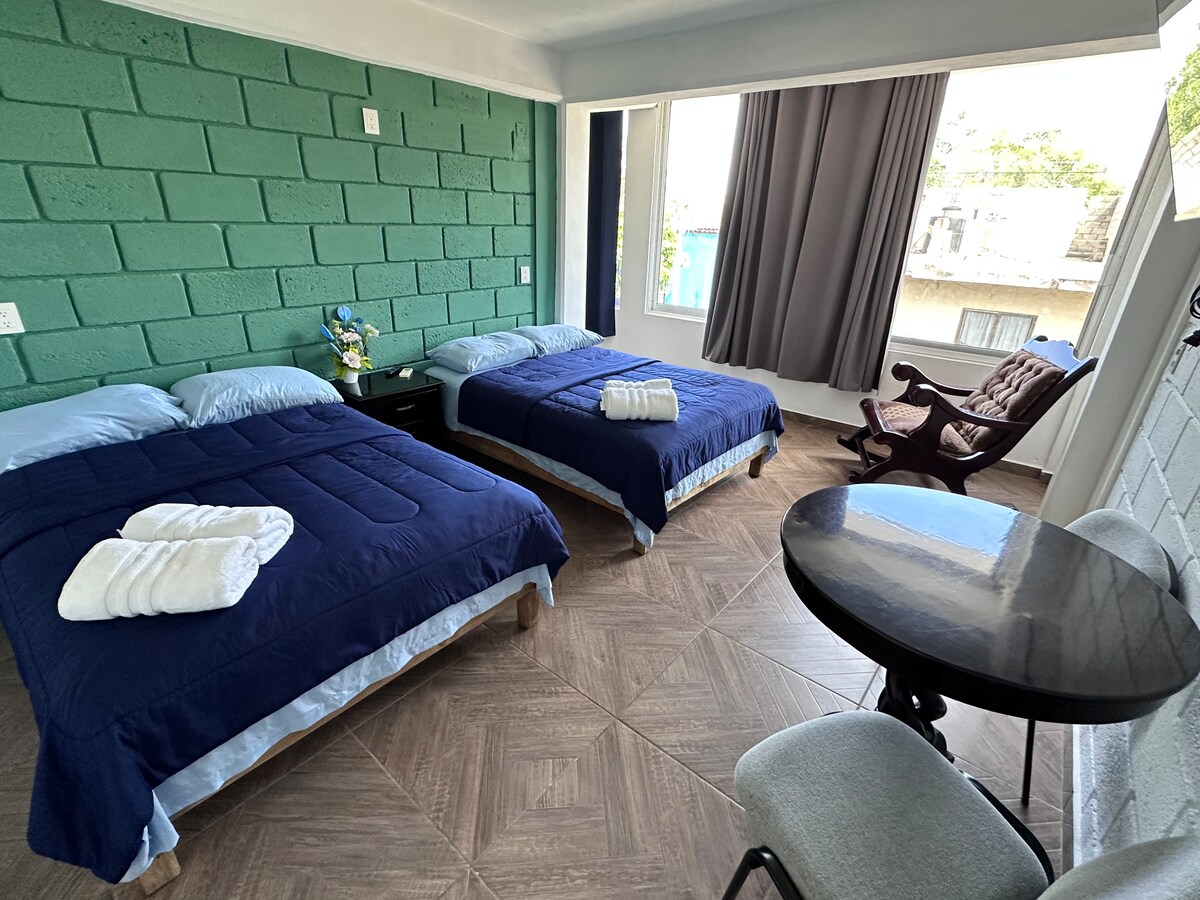 es una habitaci├│n en donde puedes disfrutar y descansar confortablemente cuenta con una cama king size y una cama individual un comedor chico refrigerador ba├▒o completo microondas, esta habitaci├│n es ideal para tres personas.