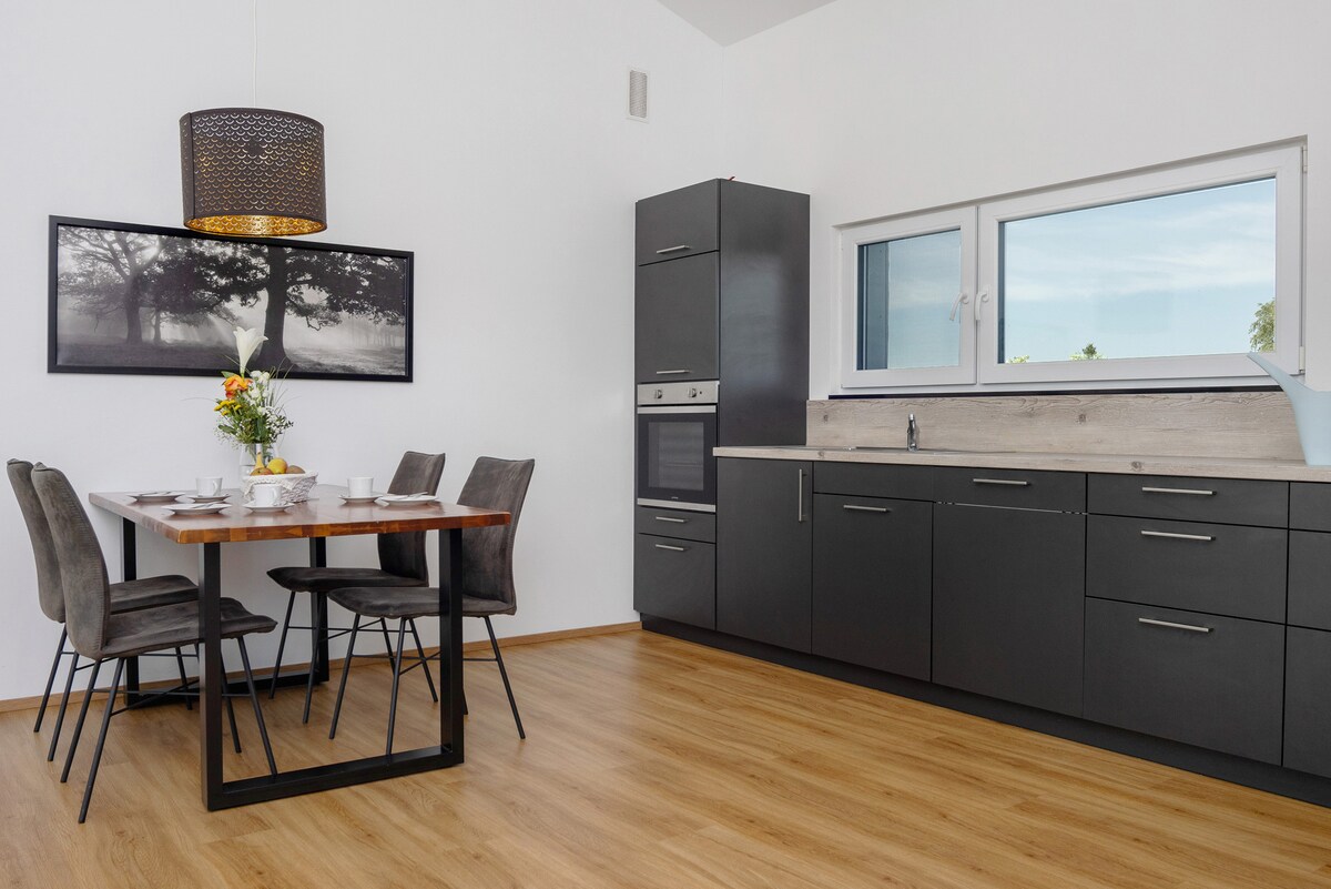 हमारे विशाल गैलरी अपार्टमेंट में आपका स्वागत है! 100 वर्ग मीटर से अधिक में आराम और सहवास का अनुभव करें। हमारे अपार्टमेंट में 6 लोग रह सकते हैं और इसमें दो लॉक करने योग्य बेडरूम हैं, साथ ही गैलरी में एक अतिरिक्त सोने की जगह भी है। उदार रहने और भोजन क्षेत्र आपको एक खुली रसोई, 8 लोगों के लिए एक डाइनिंग टेबल और एक आरामदायक सोफे के साथ आराम करने के लिए आमंत्रित करता है। अपने आप को बड़े बाथटब में एक सुखदायक विराम का इलाज करें।