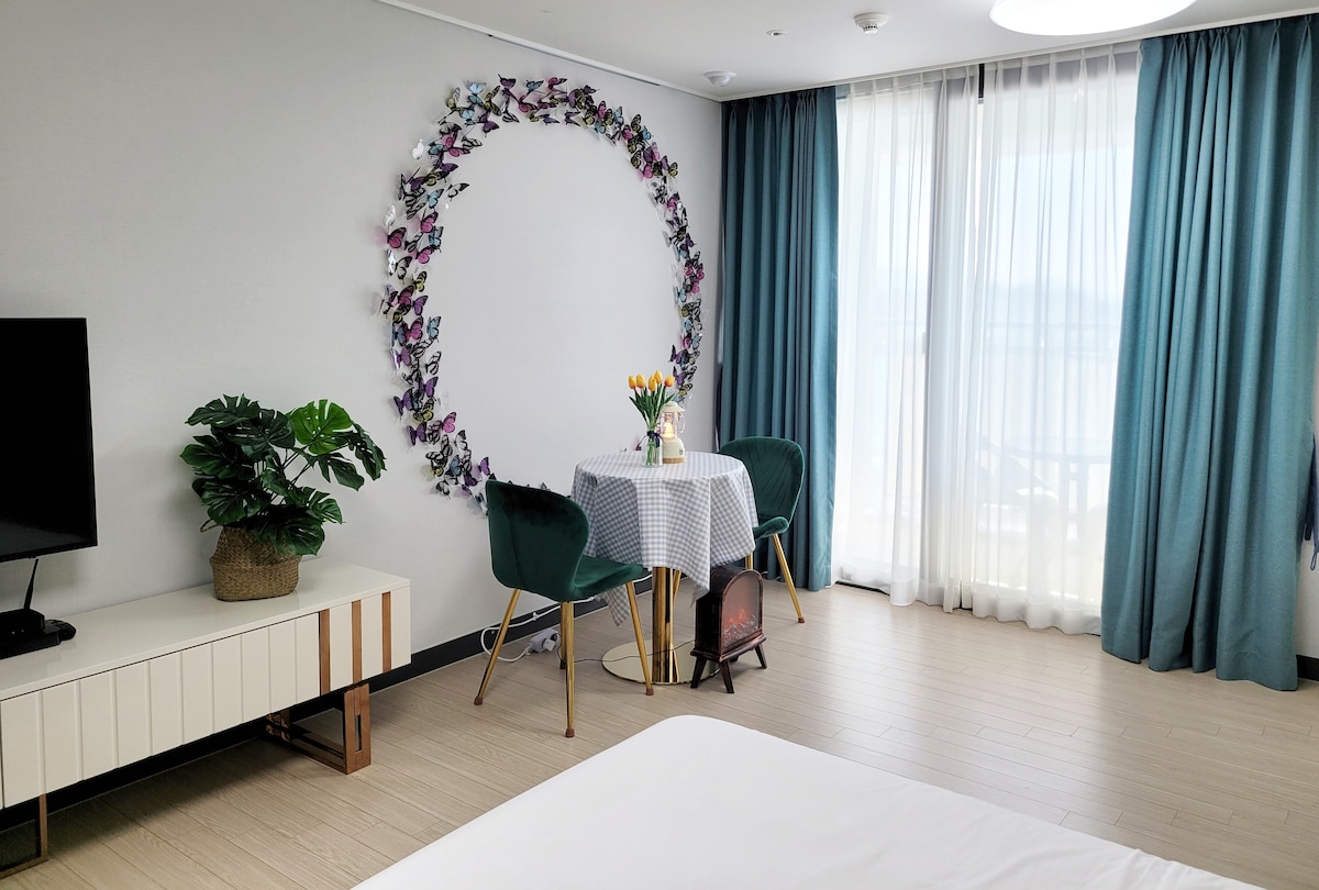 1. рдиреМрдХрд╛ рдЬрд╣рд╛рдЬ рдХрд╛ рд╕рд╣реА рд╕рдореБрджреНрд░ рджреГрд╢реНрдпред 2. рдЬрд╣рд╛рдВ рдЖрдк рдЕрдЪреНрдЫреА рд░реЛрд╢рдиреА рдХреЗ рд╕рд╛рде рдПрдХ рд╕реБрдВрджрд░ рд╕реВрд░реНрдпрд╛рд╕реНрдд рдкрд░ рдХрдмреНрдЬрд╛ рдХрд░ рд╕рдХрддреЗ рд╣реИрдВ 3. 72 рдЗрдВрдЪ рдЯреАрд╡реА - Netflix, Watcha, Tving, Youtube 4. рдПрдХ рд╕реИрд░рдЧрд╛рд╣ рдЬрд╣рд╛рдВ рдЖрдк рдЕрдкрдиреЗ рд╕рд╛рдордиреЗ рд╢рд╛рдВрдд рд╕рдореБрджреНрд░ рджреЗрдЦ рд╕рдХрддреЗ рд╣реИрдВ 5. Dolsan рдкреБрд▓, рд░реЛрдорд╛рдВрдЯрд┐рдХ Pocha рд╕реНрдЯреНрд░реАрдЯ - рдХрд╛рд░ рджреНрд╡рд╛рд░рд╛ 15 -20 рдорд┐рдирдЯ рдХреЗ рднреАрддрд░ 6. Ungcheon Beach - рдХрд╛рд░/рдпреЙрдЯ рдЯреВрд░ рджреНрд╡рд╛рд░рд╛ 5 рдорд┐рдирдЯ 7. 2 рдкреНрд░реЗрд░рдг рдЫреЗрдж, рдмрд░реНрддрди, рдФрд░ рдлреНрд░рд╛рдЗрдВрдЧ рдкреИрди - рд╕рд░рд▓ рдЦрд╛рдирд╛ рдкрдХрд╛рдиреЗ рд╕рдВрднрд╡ рд╣реИ (рдмрд╛рд░рдмреЗрдХреНрдпреВ рд╕рдВрднрд╡ рдирд╣реАрдВ рд╣реИ) 8. рджреИрдирд┐рдХ рдмрд┐рд╕реНрддрд░ рдкрд░рд┐рд╡рд░реНрддрди рдФрд░ рдЖрд╡рд╛рд╕ рдСрдкрд░реЗрдЯрд░ рдХреЛ рдЕрдЪреНрдЫреА рддрд░рд╣ рд╕реЗ рд╕рд╛рдл рдХрд░реЗрдВ рдпрджрд┐ рдЖрдкрдХреЗ рдХреЛрдИ рдкреНрд░рд╢реНрди рд╣реИрдВ, рддреЛ рдХреГрдкрдпрд╛ рдореБрдЭреЗ рд╕рдВрджреЗрд╢ рднреЗрдЬрдиреЗ рдореЗрдВ рд╕рдВрдХреЛрдЪ рди рдХрд░реЗрдВред