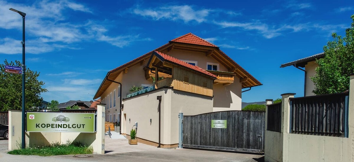 दो कमरों वाले 2 -4 लोगों के लिए अपार्टमेंट शॉवर के साथ बाथरूम, अलग शौचालय, ड्रेसिंग रूम किचन, सीटिंग, रैफ़स्टोर बेड, पुल - आउट काउच, 2x टीवी, लिविंग एरिया स्लीपिंग एरिया वाले स्लाइडिंग दरवाज़े से जुड़ा हुआ है Wals के ऐतिहासिक केंद्र में Kopeindlgut खड़ा है, जो खेतों और स्थानीय चर्च से घिरा हुआ है। हमारी जगह पर, Salzburg के coziness शानदार आराम से मिलता है। यह विवरण में परिलक्षित होता है।