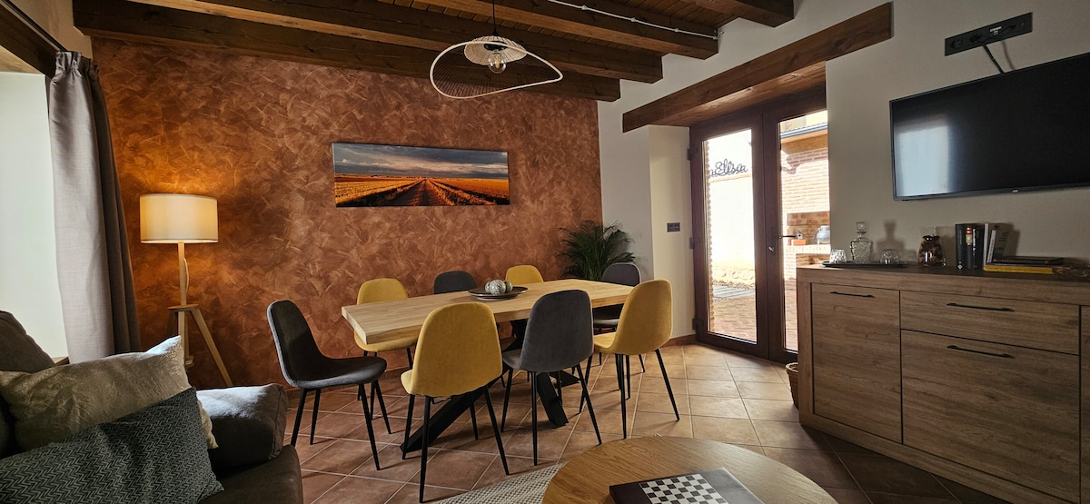 दो फ़्लोर पर 95mc और ठहरने के लिए ज़रूरी सेवाओं से लैस (एयर कंडीशनिंग, पेलेट स्टोव, वॉशिंग मशीन, डिशवॉशर, माइक्रोवेव, टोस्टर, ओवन, नेस्प्रेस्सो कॉफ़ी मेकर, वाईफ़ाई, नेटफ़्लिक्स) ग्राउंड फ़्लोर; किचन/डाइनिंग रूम, लिविंग रूम, डबल बेड वाला बेडरूम, बगीचा और बाथरूम। दूसरी मंज़िल; डबल बेड वाला बेडरूम और बच्चों का लॉफ़्ट और सिंगल सोफ़ा बेड। 16 mc के साथ टेरेस केवल एक बाथरूम है। इस पर विचार करने के लिए पहलू कि क्या बुकिंग 4 के लिए है और एक ही परिवार की नहीं है