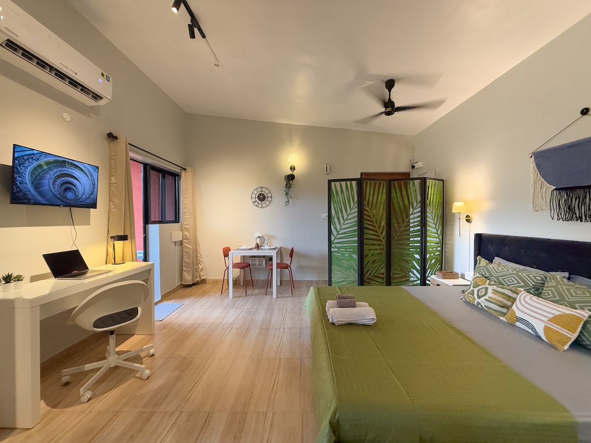 рдпрд╣ рдЖрд░рд╛рдорджрд╛рдпрдХ рд╕реНрдЯреВрдбрд┐рдпреЛ рдЕрдкрд╛рд░реНрдЯрдореЗрдВрдЯ рдЬреЛрдбрд╝реЛрдВ рдХреЗ рд▓рд┐рдП рдПрдХ рдЖрджрд░реНрд╢ рд░реЛрдорд╛рдВрдЯрд┐рдХ рдкрд▓рд╛рдпрди рд╣реИред рдкрд╛рд▓реЛрд▓реЗрдо рд╕рдореБрджреНрд░ рддрдЯ рдХреЗ рджрд┐рд▓ рдореЗрдВ рд╕реНрдерд┐рдд, рдпрд╣ рдПрдХ рдЖрдзреБрдирд┐рдХ рдЗрдВрдЯреАрд░рд┐рдпрд░, рдПрдХ рд╡рд┐рд╢рд╛рд▓ рд░рд╛рдЬрд╛ рдмрд┐рд╕реНрддрд░, рдмрдЧреАрдЪреЗ рдХреЗ рджреГрд╢реНрдпреЛрдВ рдХреЗ рд╕рд╛рде рдПрдХ рд╕реБрдВрджрд░ рдЖрдЙрдЯрдбреЛрд░ рдмреИрдардиреЗ рдФрд░ рдкреВрд░реА рддрд░рд╣ рд╕реЗ рд╕реБрд╕рдЬреНрдЬрд┐рдд рд░рд╕реЛрдИрдШрд░ рдкреНрд░рджрд╛рди рдХрд░рддрд╛ рд╣реИред рдПрдХ рд╕рдорд░реНрдкрд┐рдд рд╡рд░реНрдХрд╕реНрдЯреЗрд╢рди рдЙрдкрд▓рдмреНрдз рд╣реЛрдиреЗ рдХреЗ рд╕рд╛рде, рдЖрдк рдЕрдкрдиреЗ рдард╣рд░рдиреЗ рдХрд╛ рдЖрдирдВрдж рд▓реЗрддреЗ рд╣реБрдП рдХрд╛рдо рд╕реЗ рд╕рдВрдмрдВрдзрд┐рдд рдорд╛рдорд▓реЛрдВ рдореЗрдВ рднреА рднрд╛рдЧ рд▓реЗ рд╕рдХрддреЗ рд╣реИрдВред рдХрд┐рд░рд╛рдП рдкрд░ рдЙрдкрд▓рдмреНрдз рд╕реНрдХреВрдЯрд░ рджрд░рд╡рд╛рдЬрд╝реЗ рдкрд░ рдЖрд╕рд╛рдиреА рд╕реЗ рдЙрдкрд▓рдмреНрдз рд╣реИрдВ, рдЬрд┐рд╕рд╕реЗ рдЖрдк рд╕реНрдерд╛рдиреАрдп рдЗрд▓рд╛рдХреЗ рдХрд╛ рдЬрд╛рдпрдЬрд╝рд╛ рд▓реЗ рд╕рдХрддреЗ рд╣реИрдВ рдФрд░ рдкреНрд░реЙрдкрд░реНрдЯреА рд╕реЗ рдХреБрдЫ рд╕рдордп рдирд┐рдХрд╛рд▓ рд╕рдХрддреЗ рд╣реИрдВ