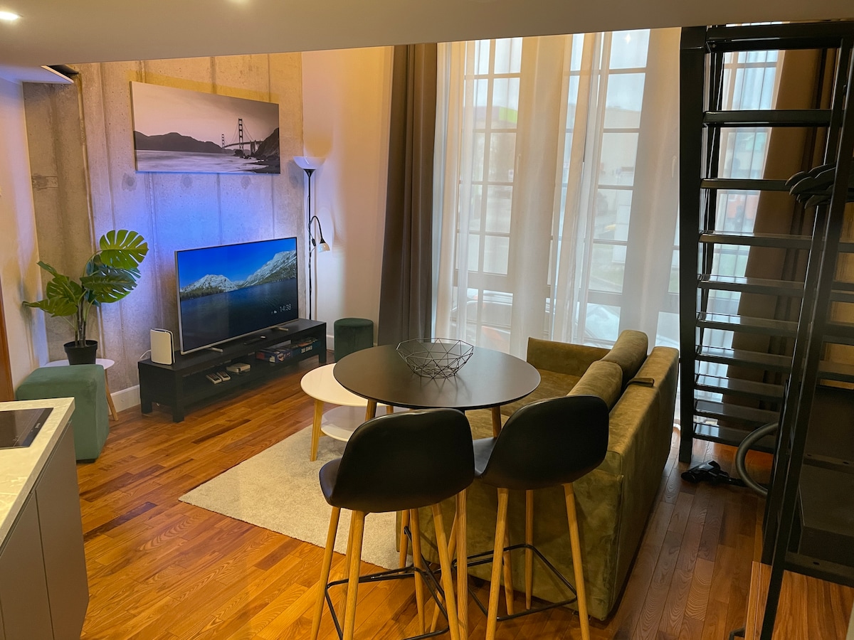 The spacious (60m2) and modern, yet cozy studio (=open-plan apartment) awaits you in a perfect location, within a short walking distance from everything that Tallinn City Centre has to offer, incl the medieval Old Town! The apartment features fully equipped kitchen and bathroom with a jacuzzi. Free parking available in locked courtyard. A public transport stop and taxi stand are within 200 metres. Perfect for couples, friends and families, but also for solo adventurers. Business traveller-ready.