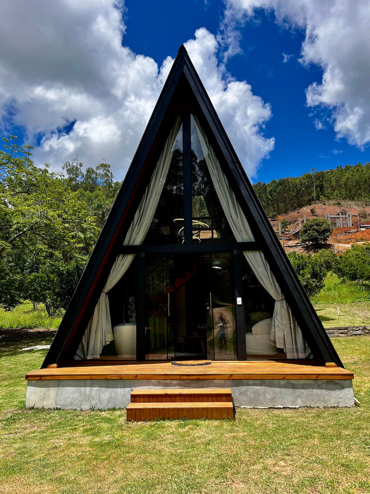 Away Cabanas- em PEDRA AZUL, 5 min da Rota do Lagarto. Tem uma porta exclusiva automática que abre por controle remoto. Acesso fácil (estrada boa), wi-fi confiável e rápido, vista e PRIVACIDADE! Deck com a redinha suspensa perfeito para relaxar. Cozinha completa, cama queen-size, roupa de cama e toalhas incluído. Ar condicionado com função de AQUECER disponível. Decoração inspirada na cidade Lungern na Suiça. A 2km de supermercado, cervejarias e da Pedra Azul. Vista e PRIVACIDADE!