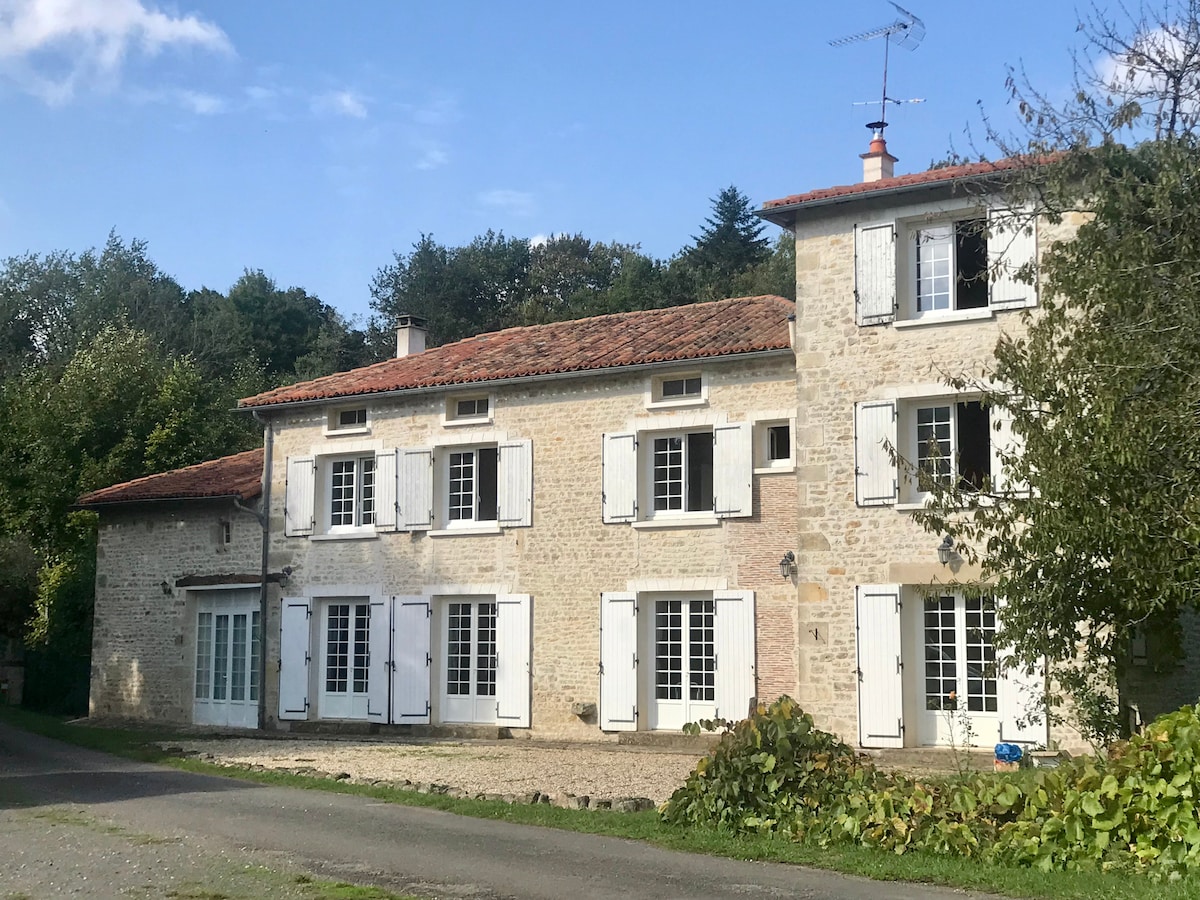 Set in 3 acres of grounds, this stunning property is in a peaceful location yet just a few minutes' walk to the amenities of historical Le Dorat. French doors from the spacious open-plan living area lead to a private garden with dining pavilion & bbq overlooking the beautiful 10x5m in-ground pool (May-Sep). Upstairs both bedrooms benefit from their own en-suite shower rooms. The pretty gardens are home to numerous fruit and nut trees, and shared by the owners resident donkeys, chickens & cats