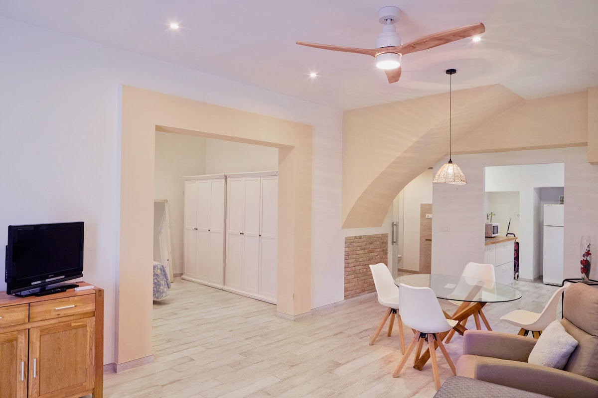 डबल बेड वाला एक बेडरूम। एक जगह में किचन, डाइनिंग और लिविंग रूम। बहुत सारी रोशनी। उत्कृष्ट इंटरनेट का उपयोग। खाना पकाने के लिए सभी neccesary amenties। माइक्रोवेव लेकिन कोई ओवन नहीं। वॉशिंग मशीन। छोटी, शांत इमारत। पर्यटक अपार्टमेंट कानूनी रूप से रजिस्टर किया गया है। मेहमानों को "पर्यटक कर" के रूप में प्रति रात 0,60 यूरो का भुगतान करना होगा। अपार्टमेंट कैटलोनियन पुलिस के साथ घोषित किया गया है। आगमन पर, मेहमानों को अपने विवरण के साथ एक फॉर्म भरना होगा। पूरे क्षेत्र में मुफ़्त पार्किंग। कोई निजी गैराज नहीं।
