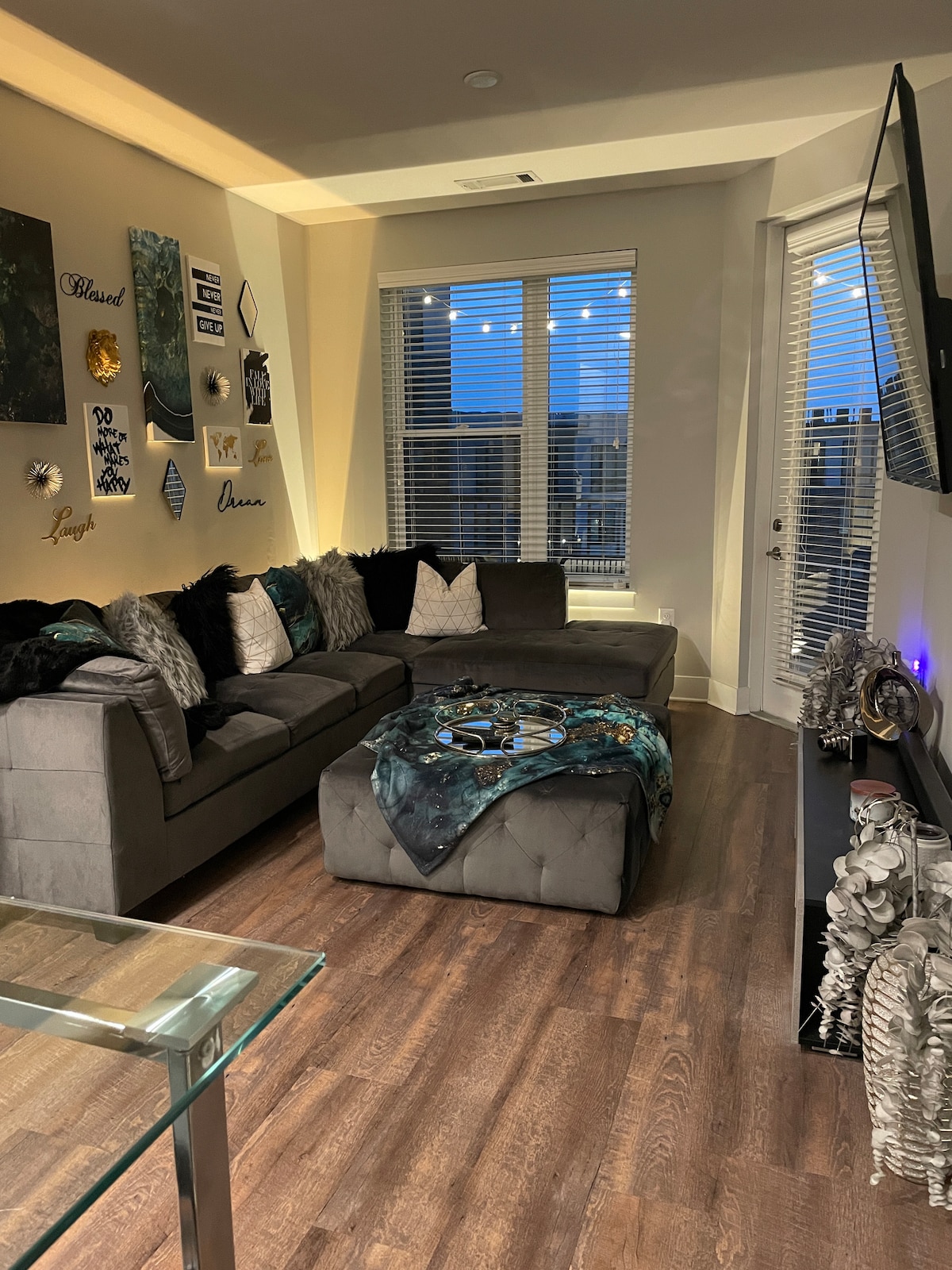 Lake Laurel Lux Retreat-Dogs Welcome! Designed w/you & your fur baby's comfort in mind. All the comforts of home. Easy access to 285/75. Spacious floor plan. Cozy Luxury beds+Queen sofa bed. 3 Roku TVs. Breakfast nook/coffee bar+island. Fully equipped Kitchen. Enjoy a Braves game or nearby restaurants or make your own meals at home. W/D, Convenient to Silver Comet trail, Aquarium, Chattahoochee, Mercedes Benz, the Battery, Roxy & Downtown. Dog friendly. Perfect for long stays. *Shared backyard.