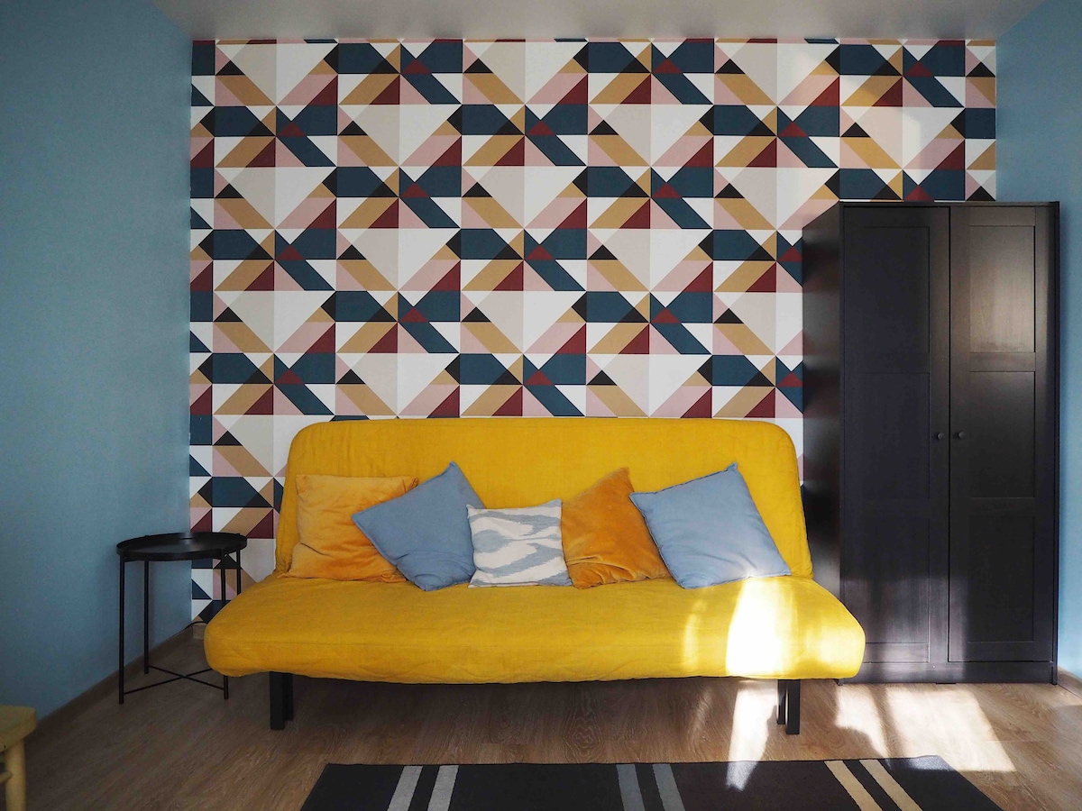 पहली मंज़िल पर एक बेडरूम वाला यह आरामदायक फ़्लैट शहर के केंद्र में स्थित है और 2 -4 लोगों के लिए बिल्कुल सही है। आप यहाँ के ग्रामीण इलाकों के माहौल को महसूस कर सकते हैं, जो एक पार्क से घिरा हुआ है, सड़क के ठीक उस पार एक जंगल और झील है। फ़्लैट में एक धूप वाली बालकनी है और यह शहर के मुख्य चौराहे, शॉपिंग सेंटर और किराने की दुकानों के पास आसानी से स्थित है। यह व्यावसायिक यात्राओं और छुट्टियों दोनों के लिए एक आदर्श जगह है। अपार्टमेंट में वाई - फ़ाई, एक स्मार्ट टीवी और एक वॉशिंग मशीन लगी हुई है।