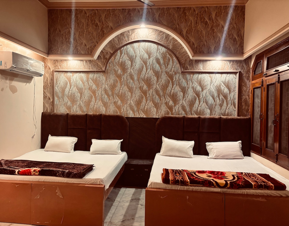 Deluxe Room – Gaurang Palace, Vrindavan Relax in comfort and tranquility in our Deluxe Room, perfect for solo travelers or couples. Enjoy a cozy queen-size bed, air-conditioning, free Wi-Fi, and all modern essentials—just steps away from Vrindavan’s sacred temples. Ideal for a peaceful spiritual retreat with the comforts of home.