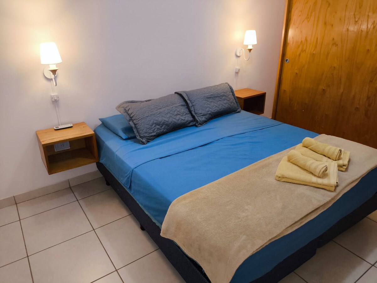 एक इमारत की तीसरी मंजिल पर स्थित अपार्टमेंट जो केंद्रीय हेलमेट के अंदर स्थित है, जो सीढ़ियों से पहुँचा जा सकता है। इसमें एक कमरा है जिसमें एक आरामदायक विशाल डबल बेड फ्रेम, कंबल उपलब्ध हैं, सुविधाओं के साथ बिस्तर है। डाइनिंग रूम, नेटफ्लिक्स प्लेटफॉर्म के साथ टीवी। ग्रिल के साथ बालकनी। एक मैक्सी कियोस्क, बेकरी और फार्मेसियों, शराब सलाखों पाया जाएगा दो ब्लॉक समय 5 मिनट चलना एक पूर्ण सुपरमार्केट है। 5 ब्लॉक दूर बस स्टेशन है।
