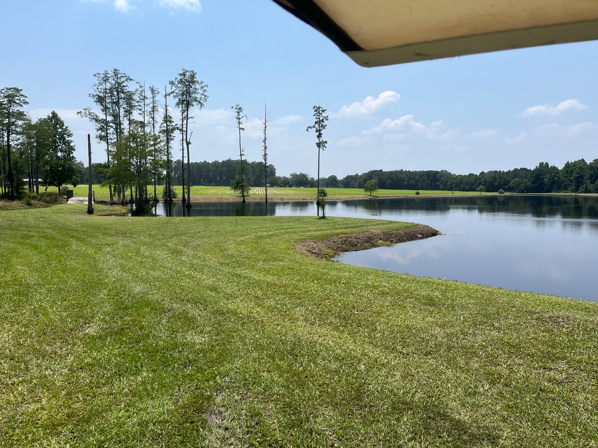 हमारी खूबसूरत निजी स्वामित्व वाली झील के नज़ारों के साथ हमारे आरामदायक घर में आराम से ब्रेक लें। सामने या पीछे का बरामदा; या तो जगह आपकी सुबह की कॉफ़ी के लिए या आपके दिन के अंत में आराम करने के लिए एकदम सही जगह है। अपना फ़िशिंग गियर साथ लाएँ और झील में घूमें। ग्रिल और बैठने की जगह के साथ एक कवर डॉक है। आराम करने के लिए एक और शानदार जगह! चाहे आप मछली पकड़ना चुनते हैं, झील के चारों ओर घूमते हैं, बोर्ड गेम खेलते हैं या पढ़ने के लिए बरामदे में घूमते हैं, वहाँ करने के लिए बहुत कुछ है। और...हम शहर से बस कुछ ही मिनट की दूरी पर हैं।