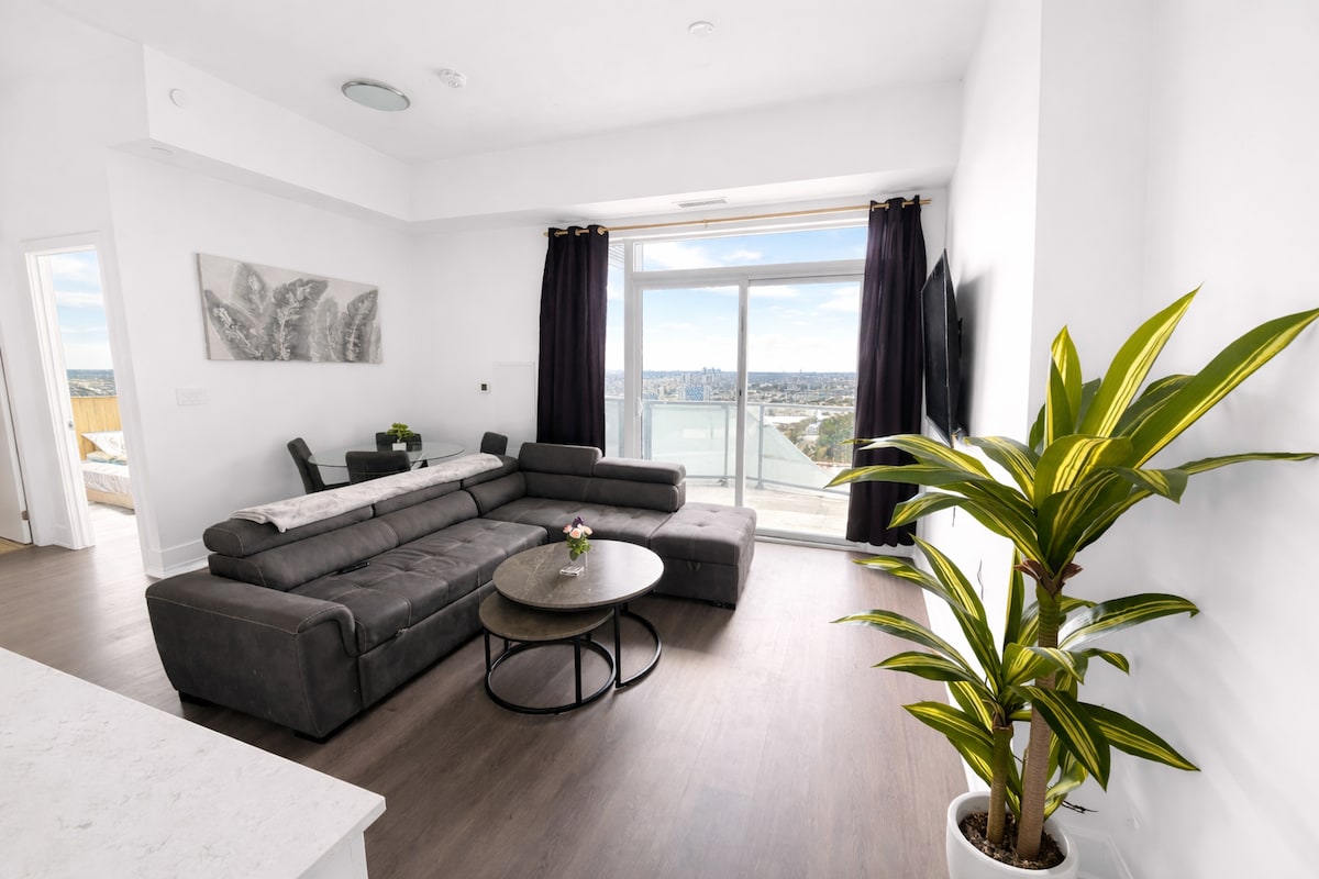 अपने स्काई - हाई एस्केप में आपका स्वागत है। किचनर वाटरलू के बीचों - बीच 21वीं मंज़िल पर मौजूद है। इस स्टाइलिश 1-बेडरूम कॉन्डो में शानदार नज़ारों के साथ-साथ एक आरामदायक क्वीन साइज़ बेड और अत्याधुनिक उपकरणों से लैस एक पूर्ण रसोईघर भी है। बिल्डिंग सुविधाओं में जिम, पूल, लाउंज क्षेत्र और BBQ के साथ छत शामिल हैं। चाहे आप यहाँ काम के लिए आए हों या खेलने के लिए, आप घर पर ही हैं।