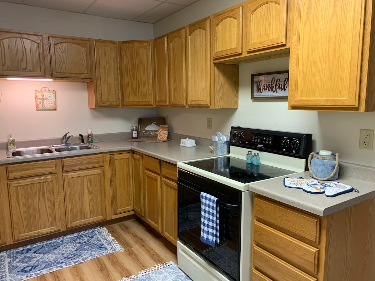 वेबस्टर, एसडी में स्थित, यह एक पूर्ण सेवा घर है जिसमें 2 बेडरूम और 1 बाथरूम है। बेडरूम में 2 पूरे बेड, तीन ट्विन्स (बंक) और एक सिंगल बेड हैं। लिविंग रूम में पुल - आउट काउच में एक क्वीन बेड भी है। यदि आप मछली नहीं ले रहे हैं तो 65 इंच टीवी या पोकर टेबल का आनंद लें। गैरेज में एक नाव प्लग - इन और एक सफाई स्टेशन के साथ ऑफ स्ट्रीट पार्किंग है। कृपया जब आप निकलें तो बस अपनी मछली स्क्रैप लें। टीवी स्मार्ट है।