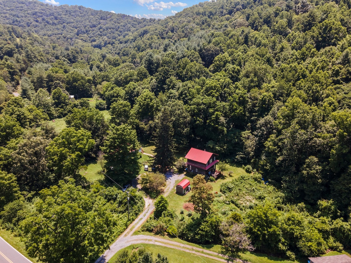 प्यारा सौर - चालित स्टूडियो अपार्टमेंट और जंगल में बसे ग्रिल और दृश्यों के साथ निजी पोर्च को कवर करता है। ब्लू रिज पार्कवे से 5 मिनट, शहर ऐशविल से 20 मिनट और वुल्फ़ लॉरेल स्की क्षेत्र से 35 मिनट की दूरी पर। एक क्वीन बेड, फोल्ड - आउट सोफ़ा, रसोई, पूरा बाथरूम, लकड़ी का स्टोव, पारमैकल्चर गार्डन, नेचर ट्रेल और फायर पिट शामिल हैं। स्टूडियो एक पारिवारिक घर की निचली मंज़िल पर स्थित है और इसमें एक निजी प्रवेश और खुद से चेक - इन है। बुक करने के लिए सकारात्मक समीक्षाओं की आवश्यकता है।