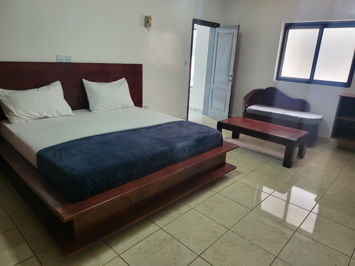 Stay in our comfortable and modern 2-bedroom, 2-bath apartment located in the quiet and accessible Foto, Dschang. Enjoy unlimited WiFi, a workspace, TV, hot water, and a fully equipped kitchen for convenient living. The apartment also features a generator for reliable power, night security for your peace of mind, and on-site parking for easy access. With friendly staff ready to assist, this is the perfect choice for work, study, or relaxation in Dschang.