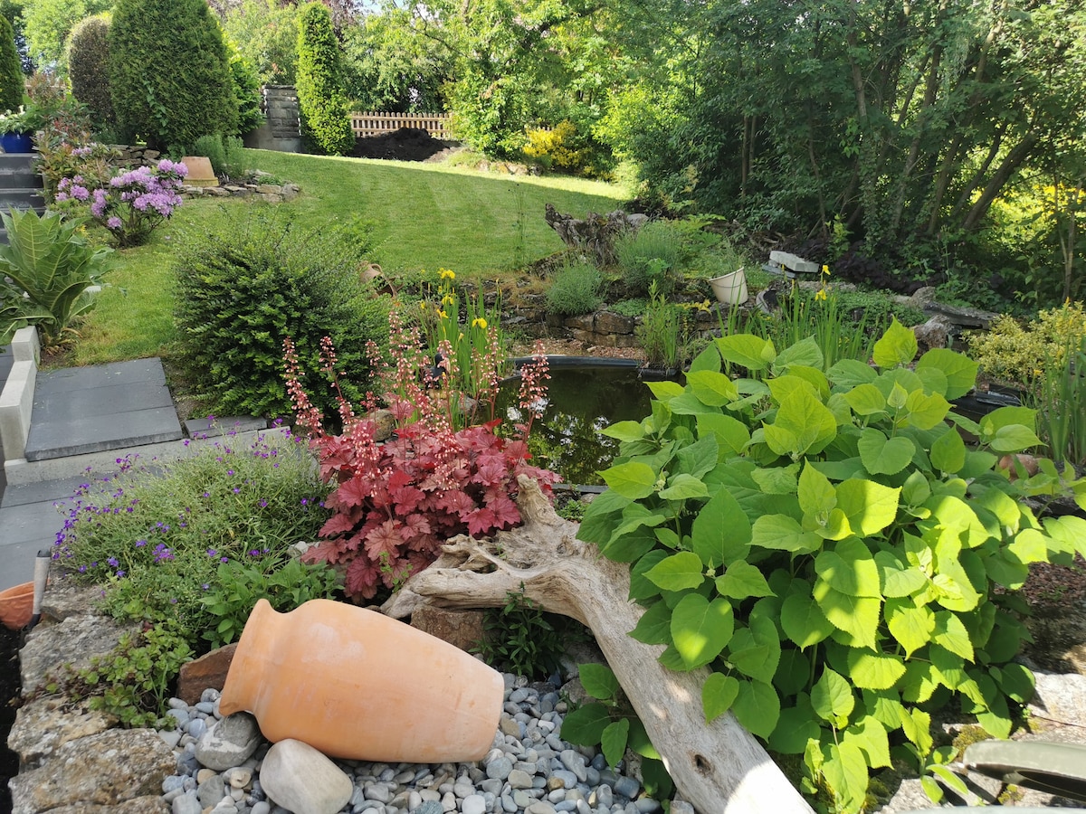 आपको एक अच्छा नखलिस्तान मिलेगा जहाँ आपको जाने की अनुमति है। शांत स्थान पर, सांस लेने और उतरने के लिए जगह है। अपने आस - पास के दृश्यों का आनंद लें और अपने आप को घर पर बनाएं! हमारे ताजा कानून के लिए एक अलग प्रवेश द्वार के साथ, आप अपनी गोपनीयता का आनंद ले सकते हैं और आपका सब कुछ हो सकता है। हमारा cuddly सुसज्जित अपार्टमेंट आपके लिए इंतजार कर रहा है!