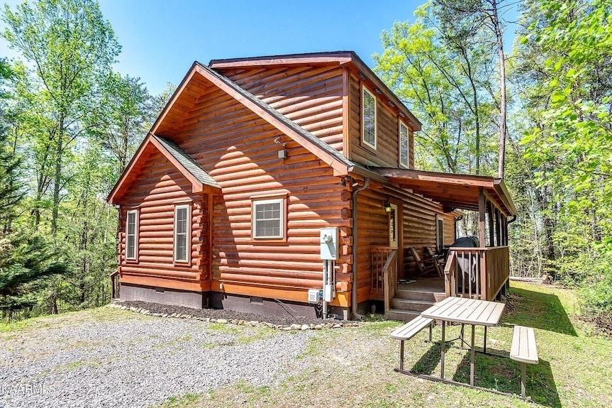 Pigeon Forge के ठीक बाहर स्थित स्मोकीज़ की भावना। यह खूबसूरत लॉग केबिन ऑफ़र करता है, लिविंग रूम जिसमें स्लीपर सोफा, सोफ़ा, फ़्लैट स्क्रीन टीवी, गैस चिमनी है। पूरी तरह से सुसज्जित किचन। किंग लॉग बेड, भँवर टब, फ्लैट स्क्रीन टीवी के साथ बेडरूम। पूरा स्नान। क्वीन लॉग बेड, आधे स्नान और बिल्ली के पार टहलते हुए पूल टेबल और दृश्यों के साथ ऊपरी स्तर का अटारी घर । कोई पालतू नहीं कृपया हमारी 2 अन्य AIRBNB संपत्तियों को देखें;