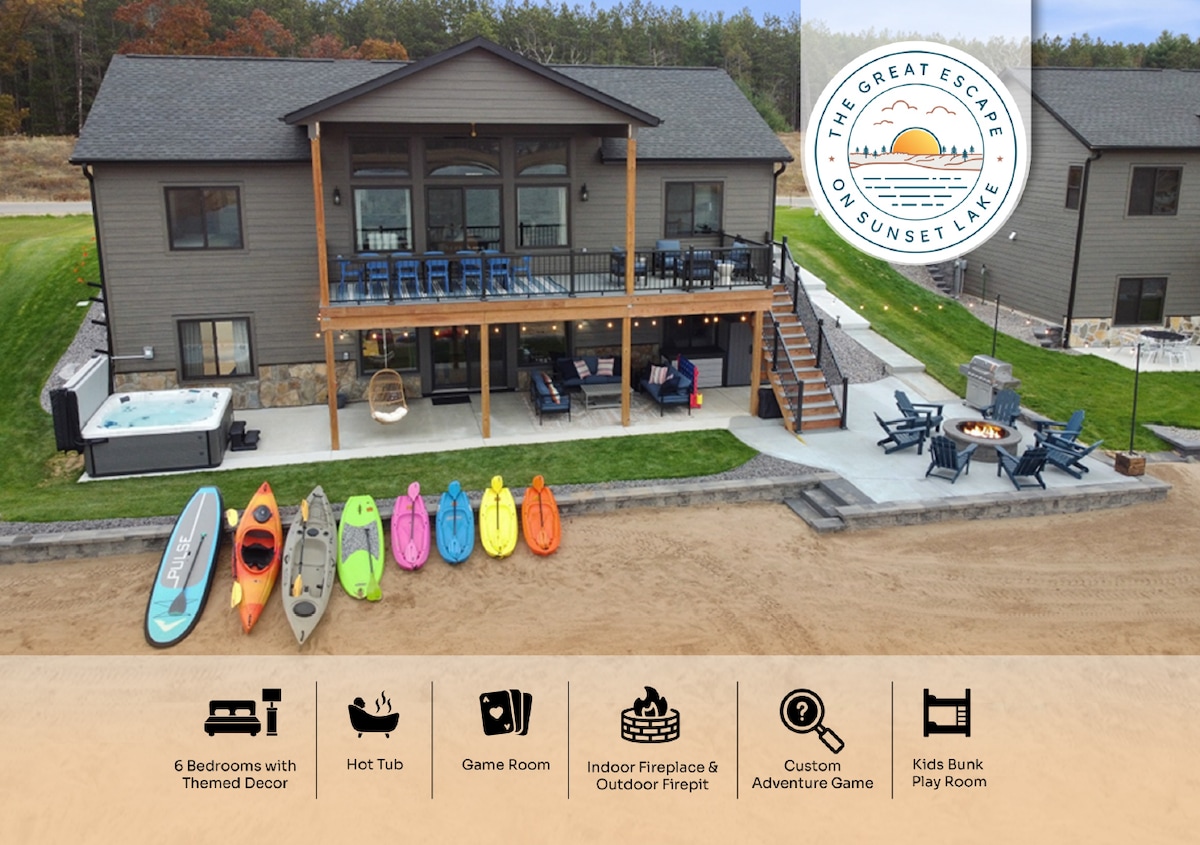 * अपनी छुट्टियाँ अभी बुक करें! *सीमित समय के लिए छूट ★ लेकसाइड 💦 ★ नियर WI Dells वॉटर पार्क (इनडोर और आउटडोर) 🌊 स्कीइंग ★ के आस - पास के डेस्टिनेशन ⛷ ★ प्राइवेट बीच बीच से ⛱️ ★ 10 कदम दूर है ★ कस्टम गैराज हैंगआउट: गर्म/ठंडा ★ पूल टेबल 🎱 डार्ट्स 🎯 आर्केड 🎮 75” टीवी ★ सोने की जगह 16 🛏 ★ 2 किंग बेड 👑★11 बेड की कुल संख्या ★ 3 पूरे बाथरूम वाले ★ बड़े 4K टीवी 📺 ★ प्रीमियम मसाज चेयर ★ ✨ स्टारगेज़िंग फ़ायर पिट 🔥 उत्तरी पाइन के पेड़ों के ★ शांत नज़ारे 🌲 ★ बिल्कुल नया घर 🫧 ★ पेशेवर ढंग से साफ़ किया गया 🧼