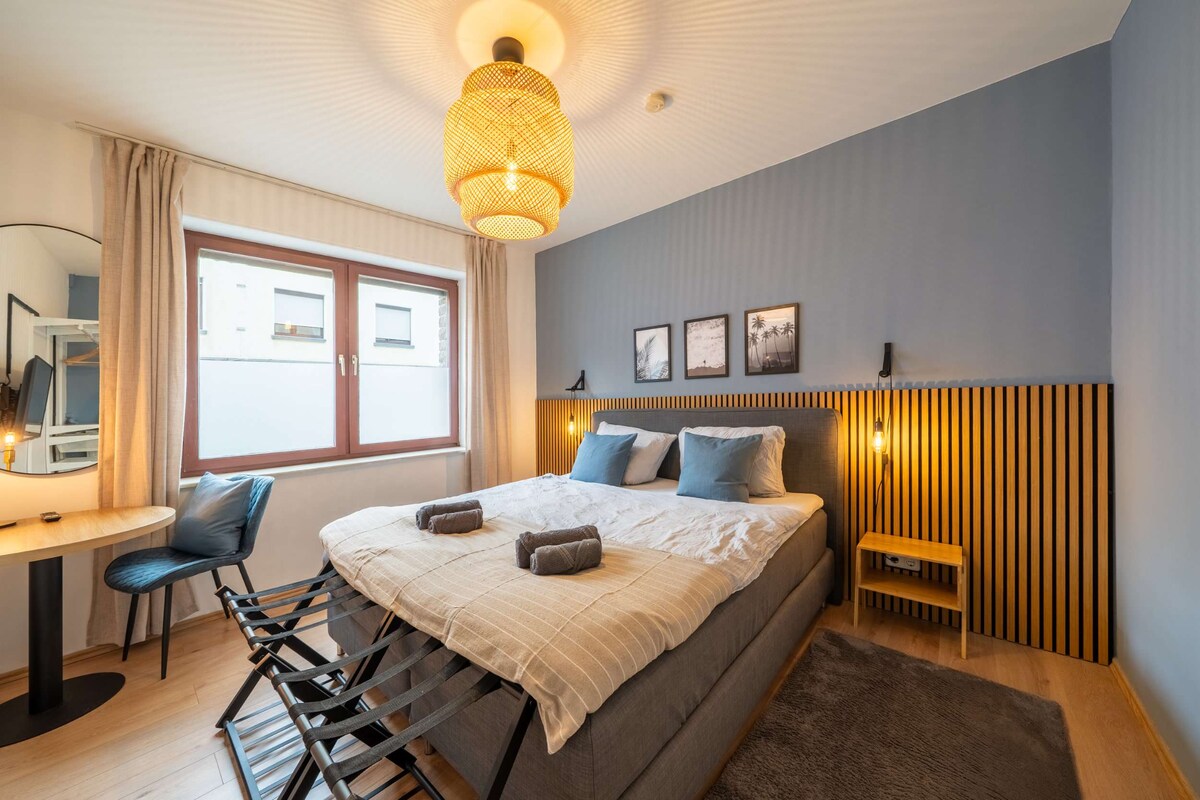 Witten में हमारे आकर्षक ऐतिहासिक रत्न की खोज करें! 95 वर्ग मीटर के इस ग्राउंड - फ़्लोर अपार्टमेंट में दो बेडरूम हैं, जिनमें अच्छी क्वालिटी के बॉक्स - स्प्रिंग बेड और स्मार्ट टीवी हैं। लिविंग रूम में 55 इंच का टीवी और बाली सोफ़ा बेड है, जो सभी मेहमानों को आराम देता है। पूरी तरह से सुसज्जित किचन में खाना पकाने का आनंद लें और आरामदायक माहौल में आराम करें। पीछे के आँगन में निजी पार्किंग की जगह सुविधा को बढ़ाती है। अगले दरवाज़े पर सुपरमार्केट और पैदल चलने की दूरी के भीतर पैदल यात्री क्षेत्र के साथ, यह अधिकतम 6 मेहमानों के लिए आदर्श है। तौलिए और चादरें